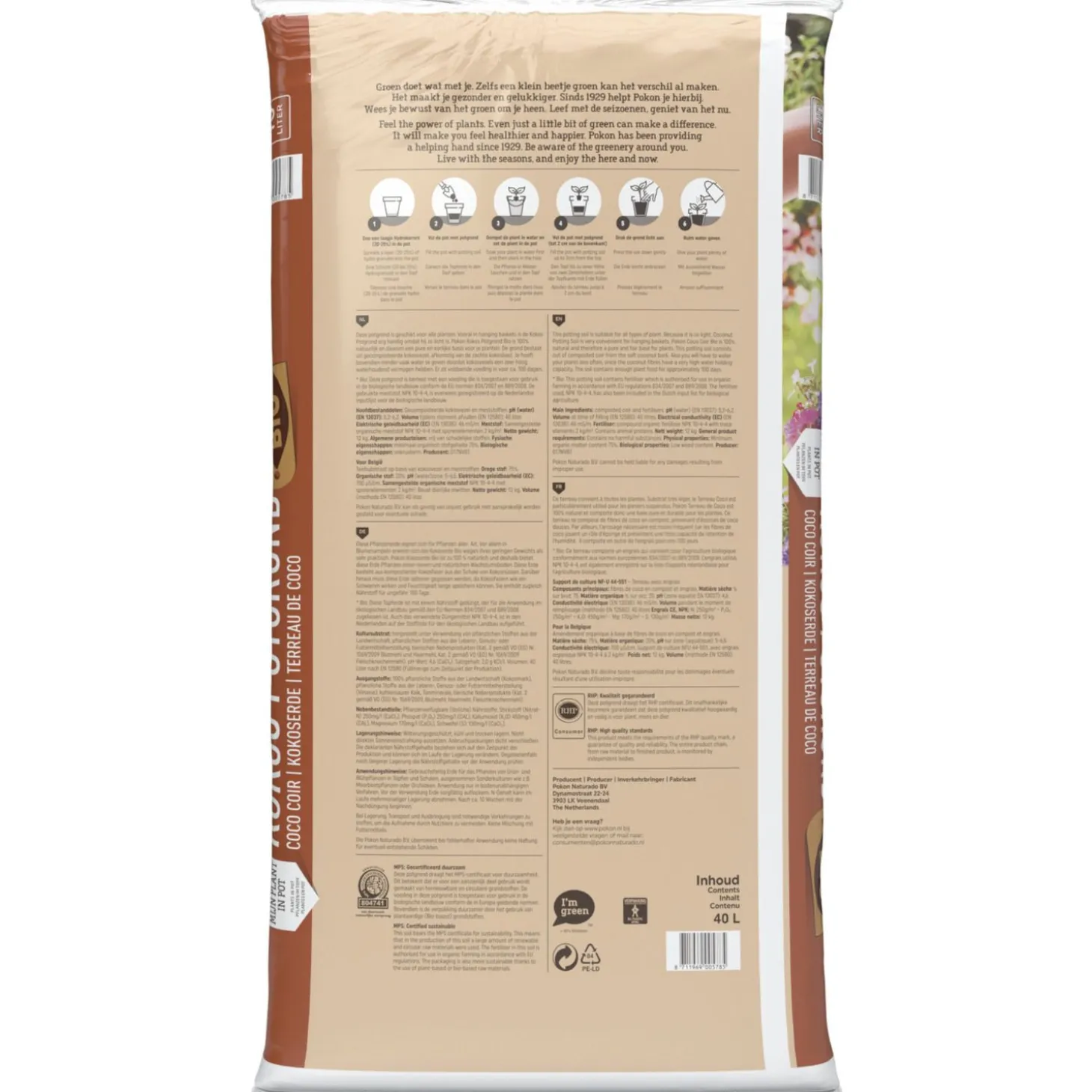 De Kokos Potgrond van Pokon is een ideaal product voor potplanten. Hiermee zorg je voor een luchtige en open grondstructuur waardoor wortels snel kunnen groeien. De potgrond bestaat uit gecomposteerde kokosvezel, afkomstig van de zachte kokosbast. Het biedt voor 3 maanden aan voeding. Doordat de kokosvezels als een spons werken, hebben ze een hoog waterhoudend vermogen en hoef je minder vaak water te geven.