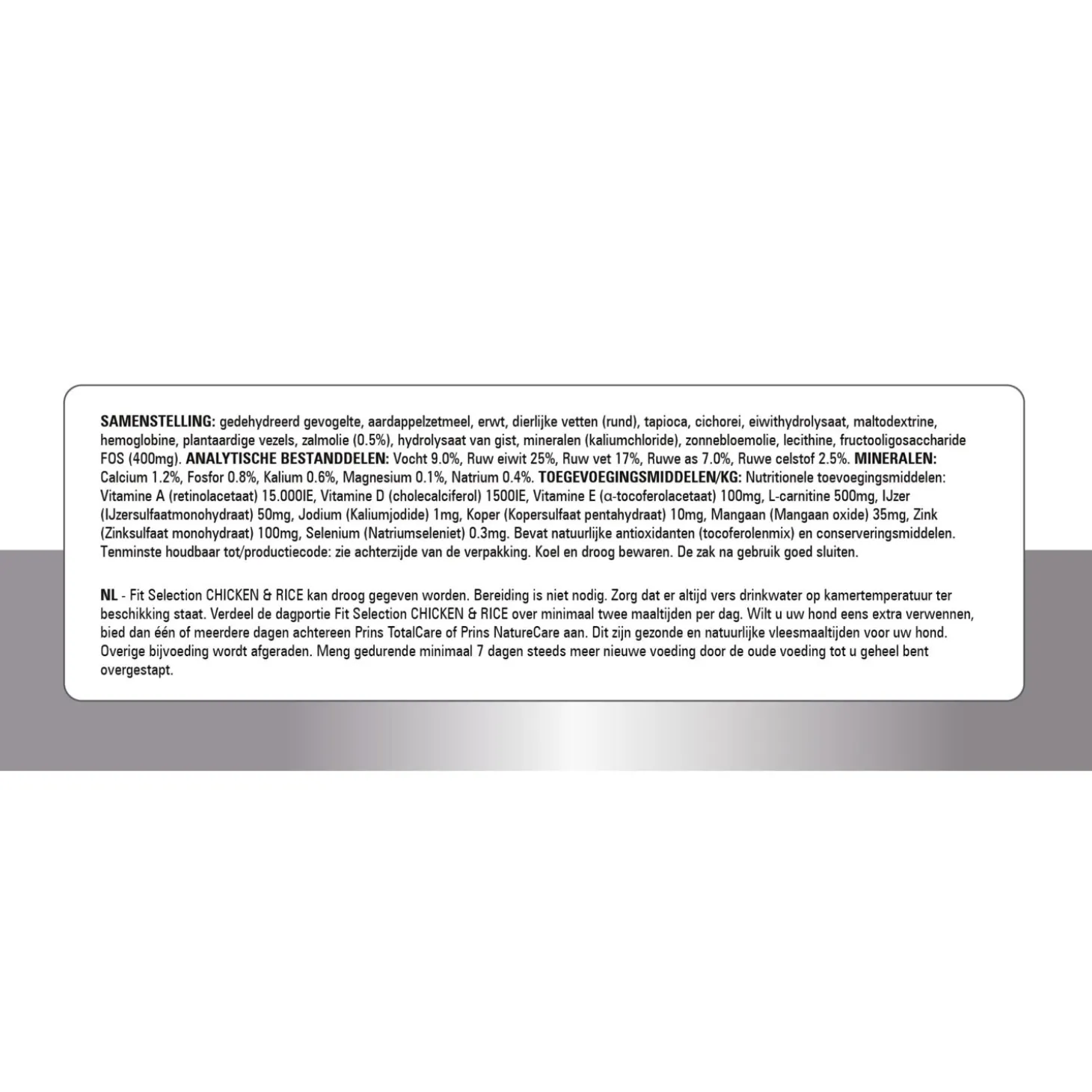Prins Fit Selection Chicken & Rice is verkrijgbaar in 2 kg en 15 kg.