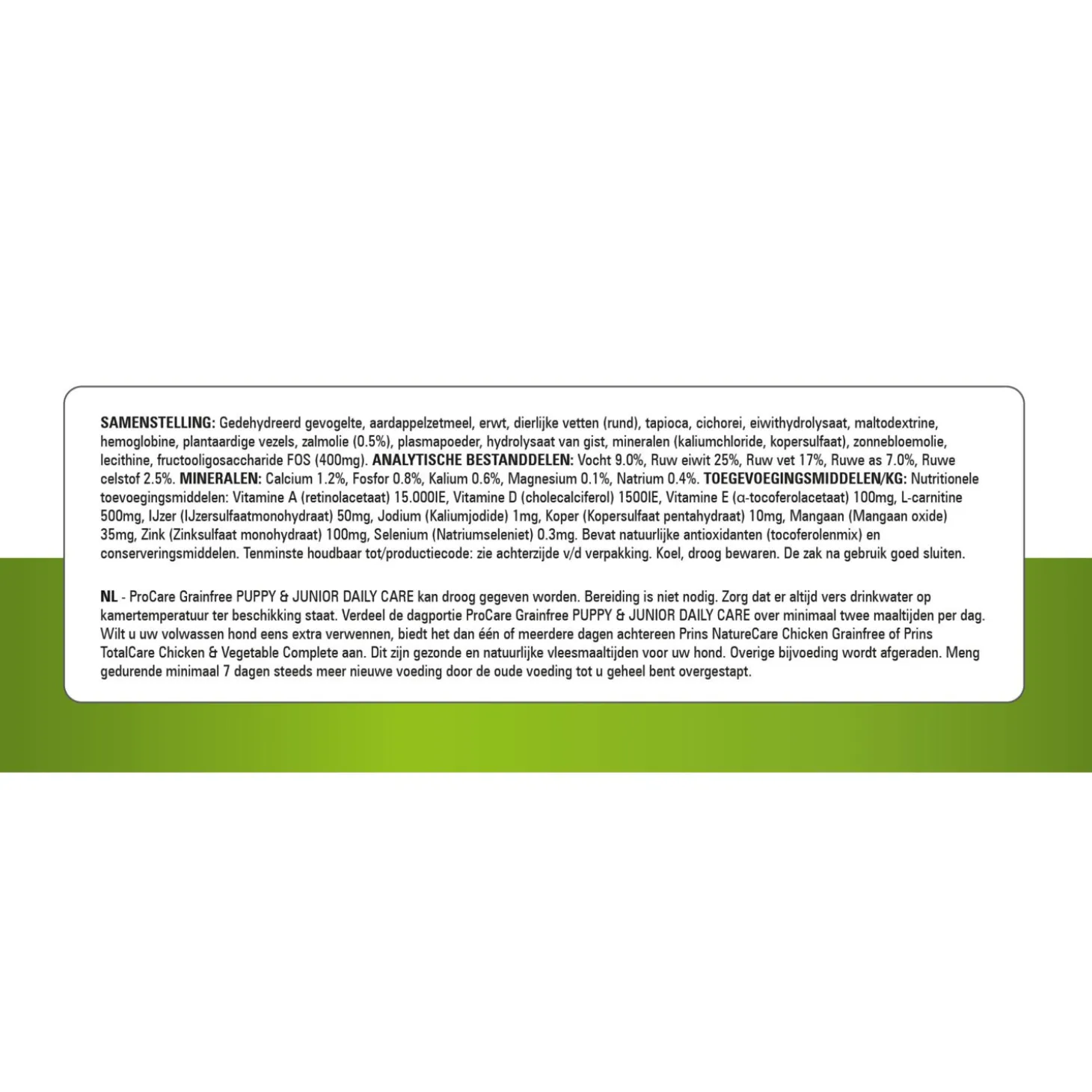 Prins ProCare Grainfree Puppy & Junior Daily Care is verkrijgbaar in 3 kg en 7,5 kg.