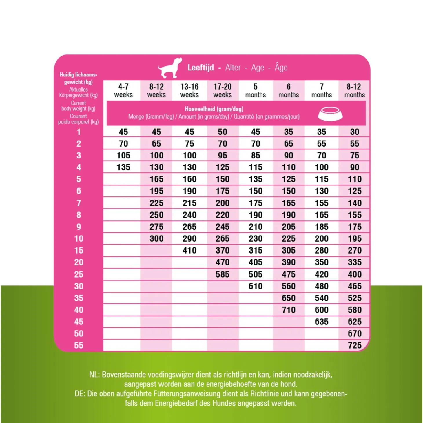 - Hoog vetgehalte voor jonge honden. Bevat een verhoogd vetgehalte om aan de behoefte van jonge honden te voldoen.