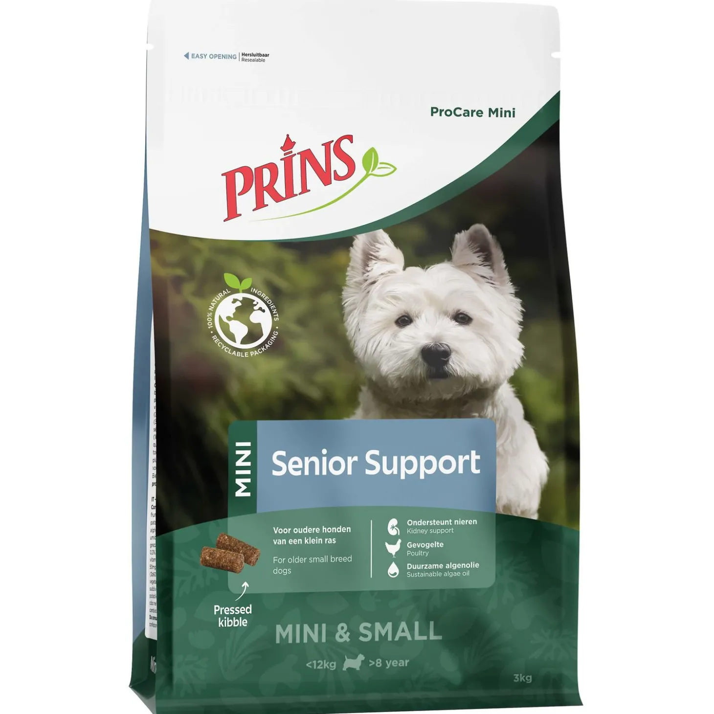 Jouw hond wordt ouder en je wilt hem natuurlijk zo lang mogelijk gezond en vitaal houden. Prins ProCare Mini Senior Support is een geperste voeding die speciaal is ontwikkeld voor oudere honden van kleine rassen.