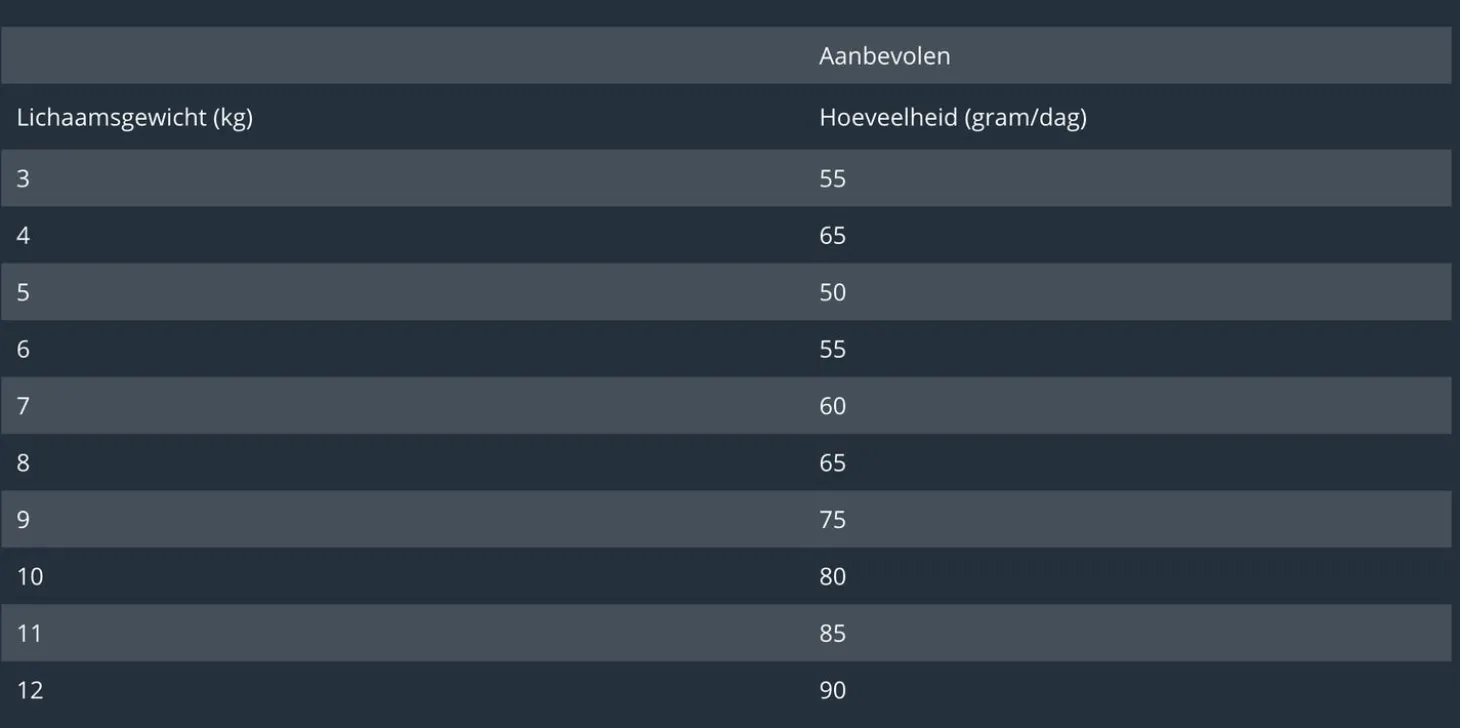 | Aanbeveling | VitalCare Adult Maxi kan droog gegeven worden. Bereiding is niet nodig. Zorg dat er altijd vers drinkwater op kamertemperatuur ter beschikking staat. Verdeel de dagportie over meerdere kleine maaltijden per dag. Meng gedurende minimaal 7 dagen steeds meer nieuwe voeding door de oude voeding tot je geheel bent overgestapt. |