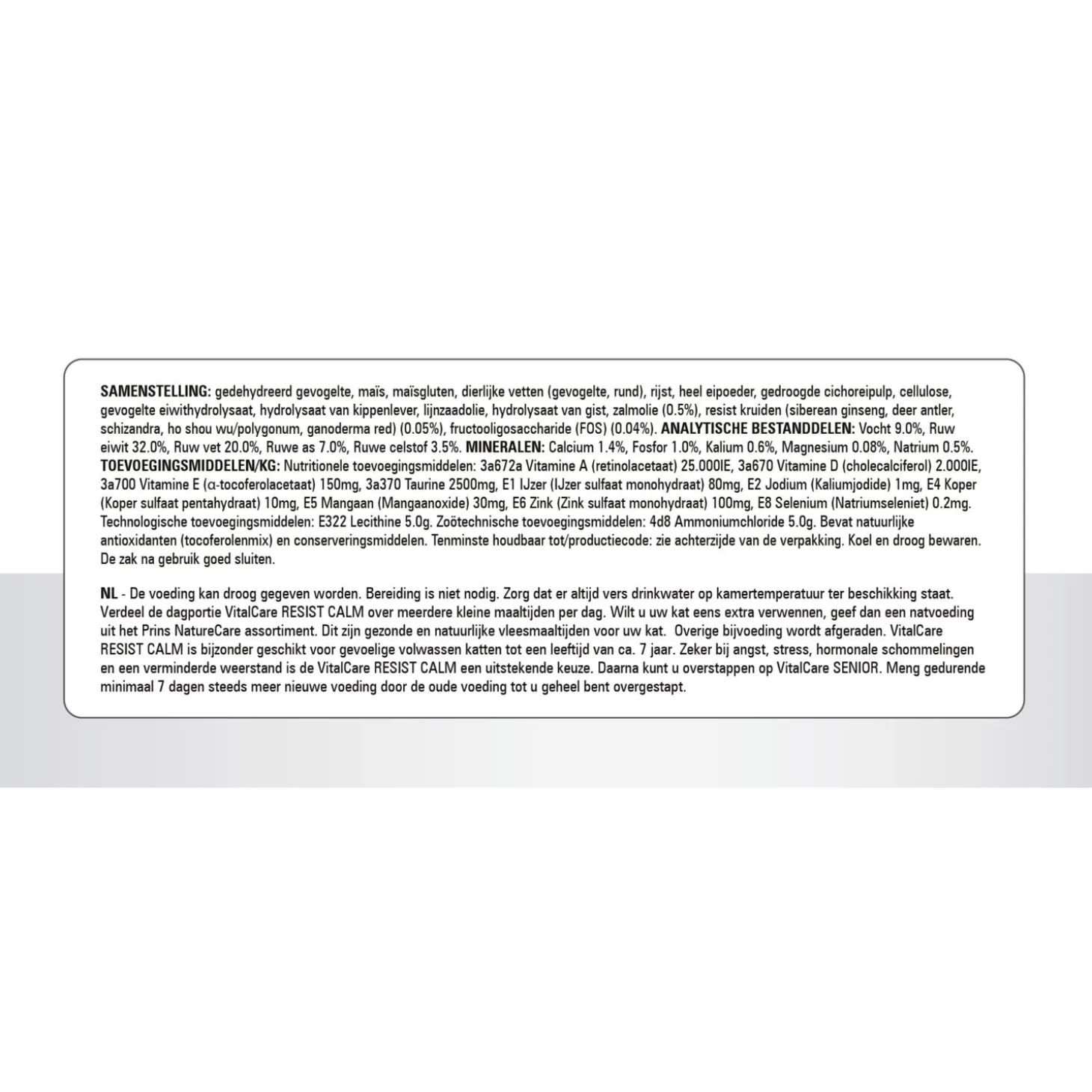 - Alle producten (m.u.v. Vitalcare BabyKitten en VitalCare Kitten) bevatten een antihaarbalformule