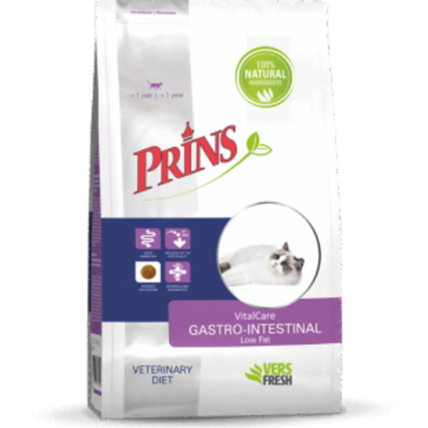 Sommige katten zijn gevoelig voor maagdarmproblemen, zoals wisselende ontlasting of diarree. Vaak is er geen goed gevormde ontlasting en soms komt spugen ook voor. Prins VitalCare Diet Gastro-Intestinal Low Fat is een 100% natuurlijke, krokante brokvoeding voor volwassen katten met een slechte spijsvertering.