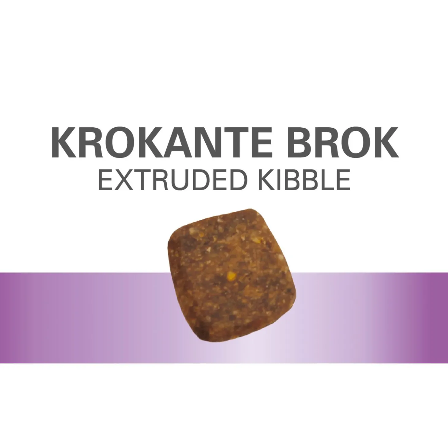 | Samenstelling | Samenstelling: dierlijk eiwitextract, gedehydreerd gevogelte, gerst, maïs, cellulose, maïsgluten, gedroogde bietenpulp, gedroogde aardappel, gevogeltevet, erwten, gedroogde appel, rundvet, gist, gehydrolyseerde kippenlever, zalmolie, inuline, mineralen. |