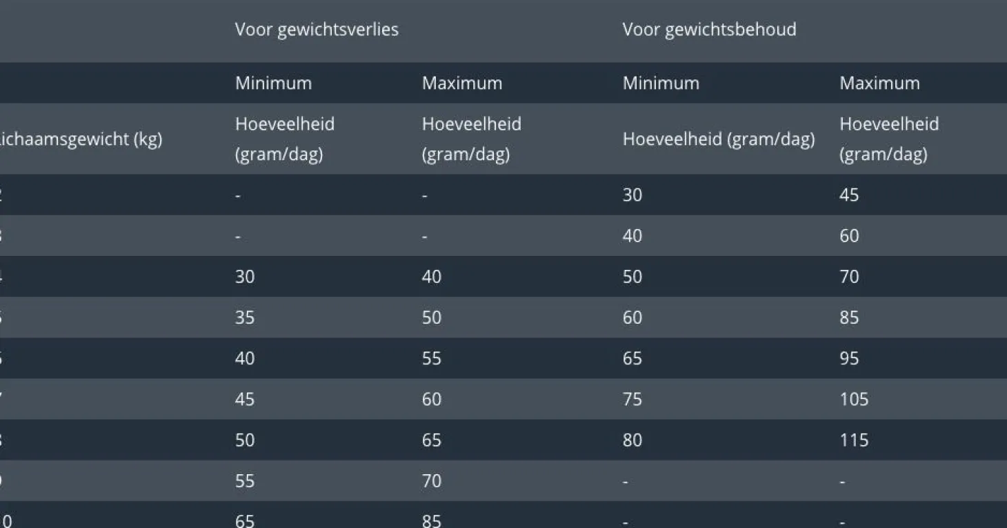 - Hoog eiwitgehalte. Een hoog eiwitgehalte zorgt voor behoud van spiermassa tijdens het afvallen.