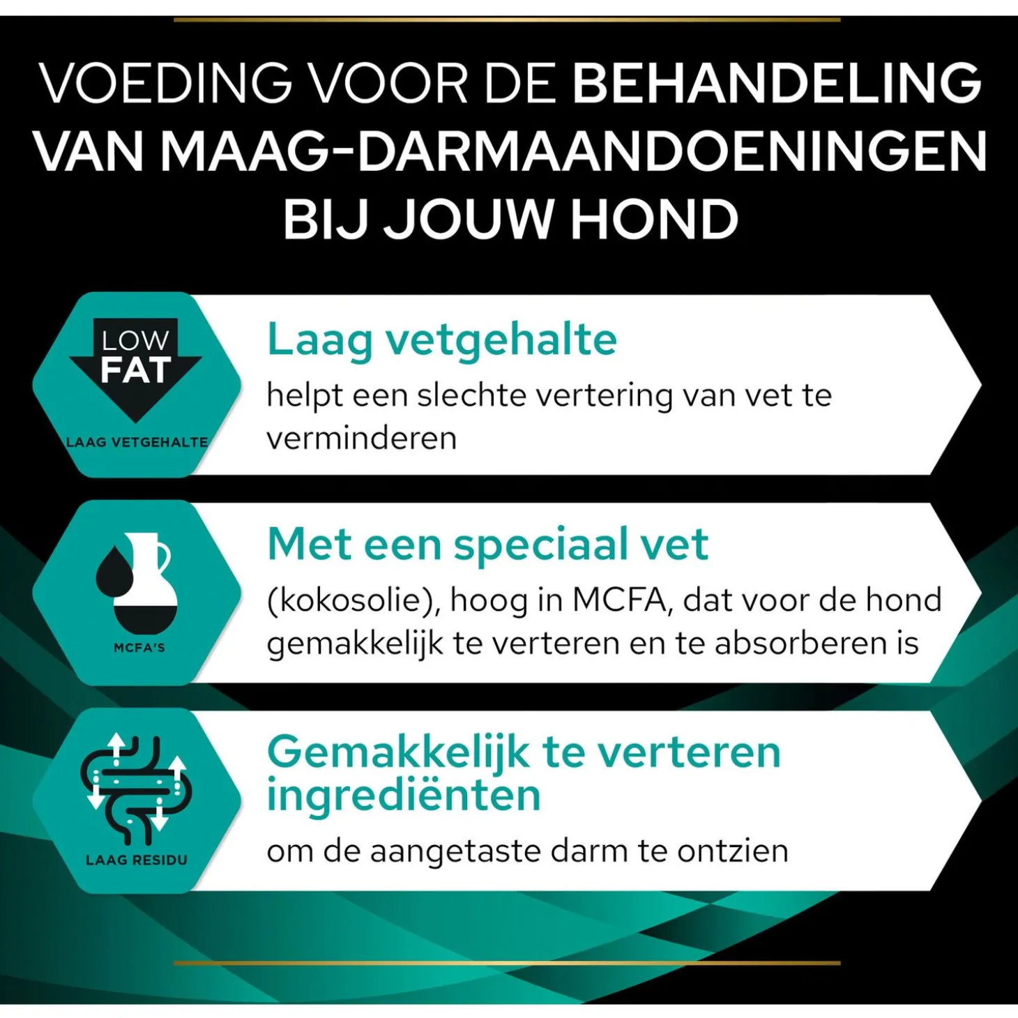 - Door een speciale vetbron (kokosolie) hoog gehalte aan middellangeketen-vetzuren (Medium Chain Fatty Acids, MCFA’s) voor een makkelijke absorptie in de darm*.*vergeleken met de andere producten van de PURINA® PRO PLAN® VETERINARY DIETS reeks.