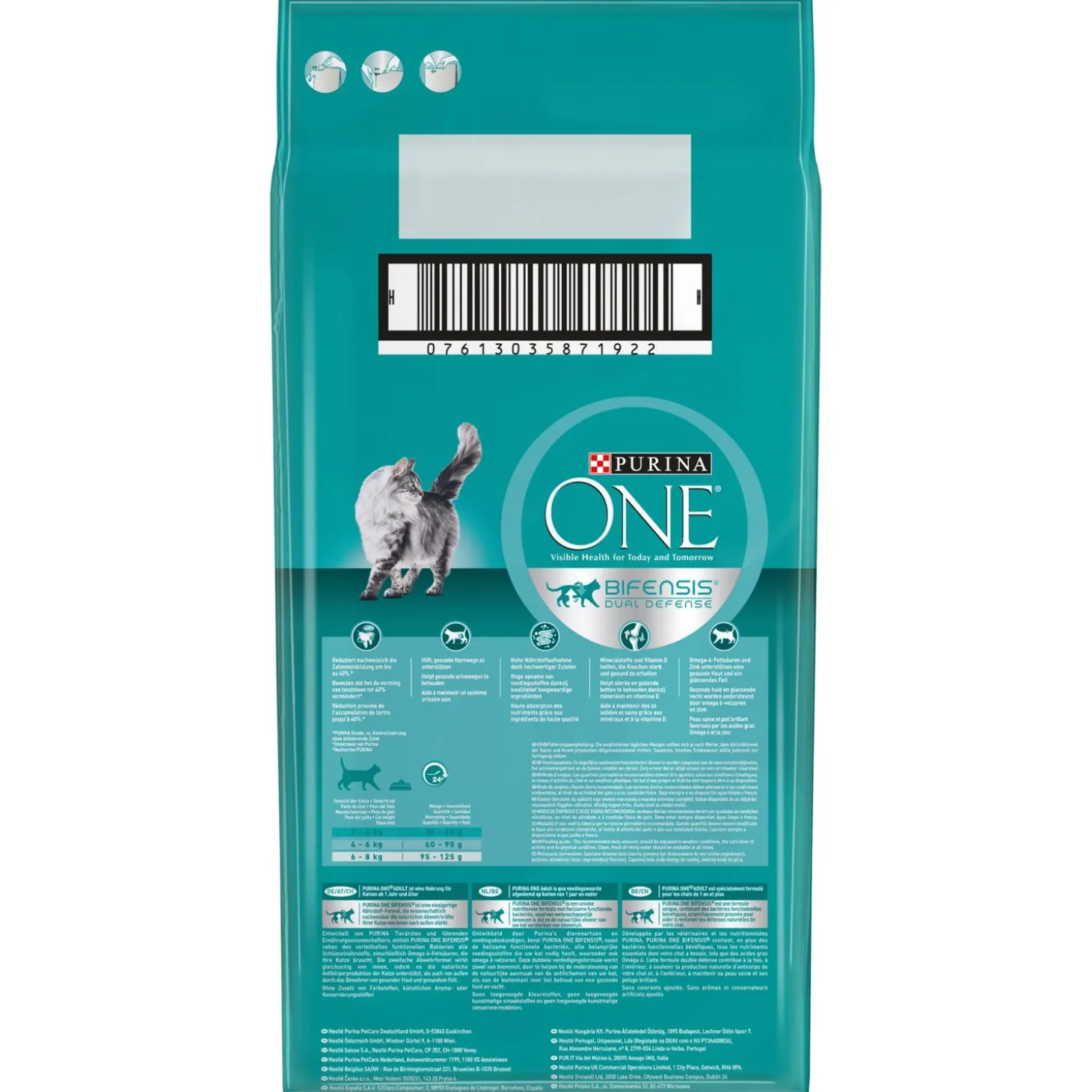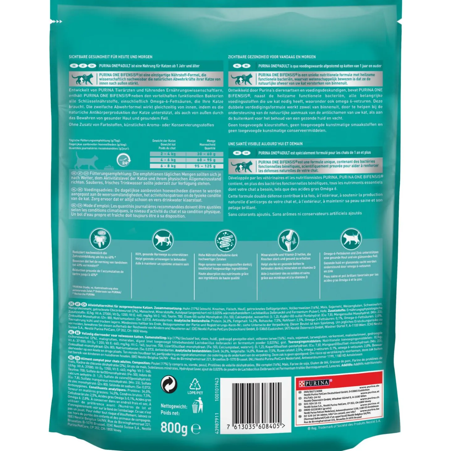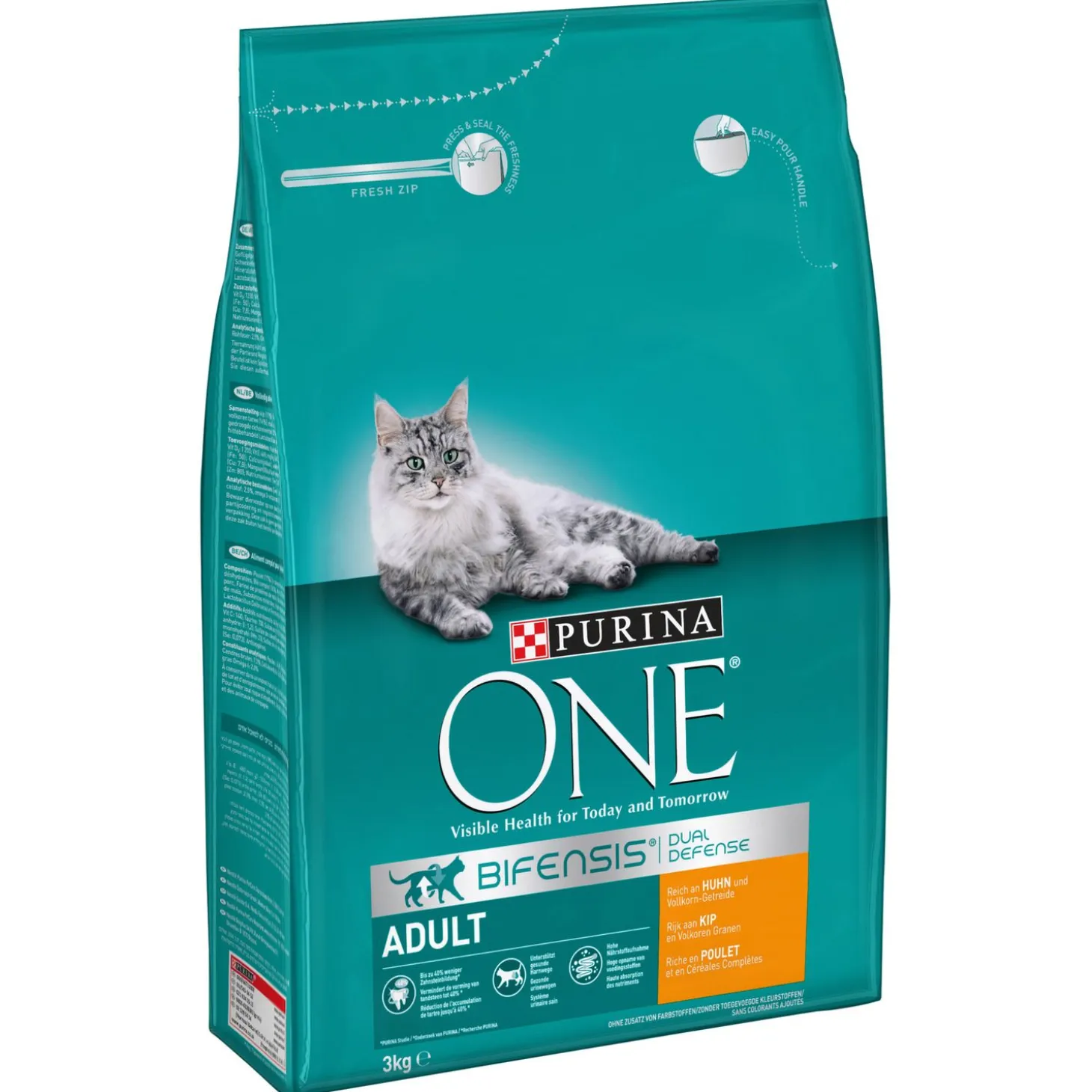 - Deze zak is recyclebaar; Purina ONE® Adult is qua voedingswaarde afgestemd op katten van 1 jaar en ouder