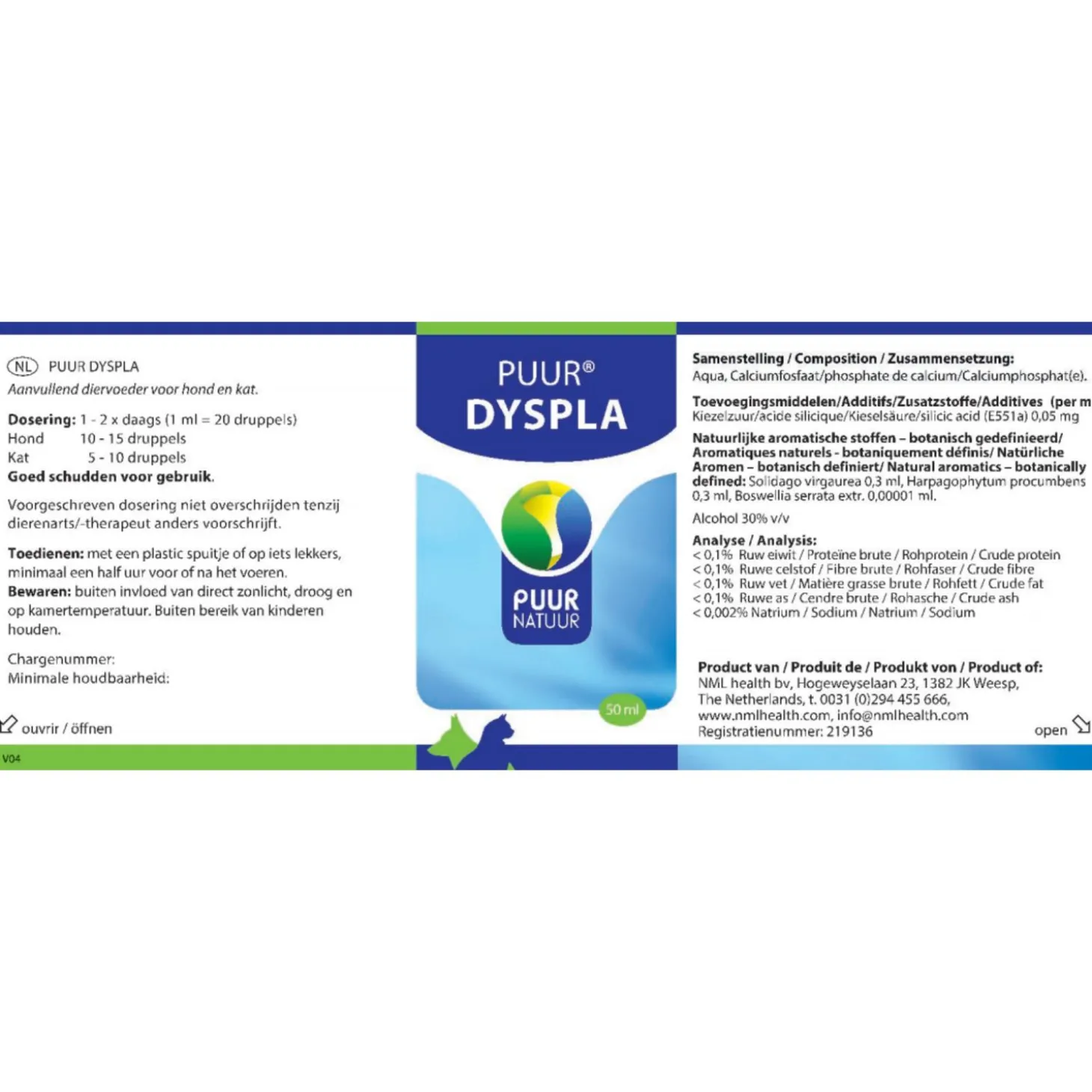 | Samenstelling | Aqua, Calciumfosfaat/phosphate de calcium/Calciumphosphat(e).Toevoegingsmiddelen/Additifs/Zusatzstoffe/Additives (per ml):Kiezelzuur/acide silicique/Kieselsäure/silicic acid (E551a) 0,05 mgNatuurlijke aromatische stoffen – botanisch gedefinieerd/Aromatiques naturels – botaniquement définis/ NatürlicheAromen – botanisch definiert/ Natural aromatics – botanicallydefined: Solidago virgaurea 0,3 ml, Harpagophytum procumbens0,3 ml, Boswellia serrata extr. 0,00001 ml.Alcohol 30% v/v |