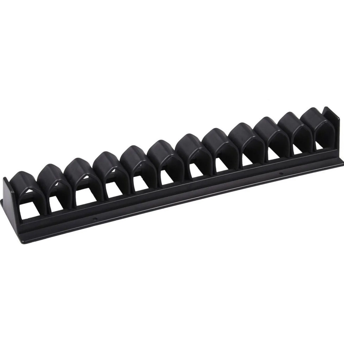 Deze zweephouder is ideaal voor in de zadelkamer of rijbaan en biedt ruimte voor elf zwepen. De voorgeboorde gaten zorgen ervoor dat de zweephouder gemakkelijk te bevestigen is.