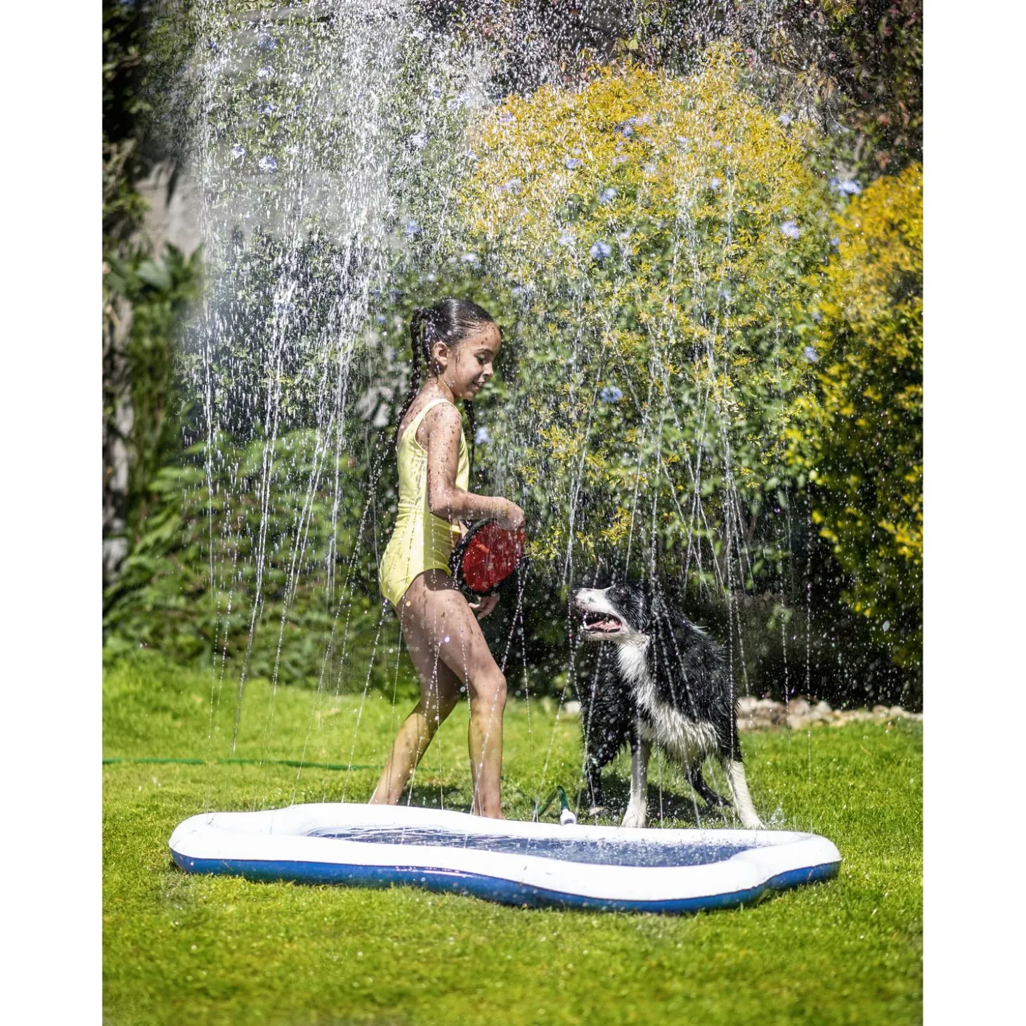 Op warme zomerdagen heeft iedereen verkoeling nodig. Deze mat is niet alleen leuk voor jouw hond, maar ook voor jezelf en je kinderen zorgt deze mat voor veel speelplezier. De Sprinkle Mat wordt eenvoudig uitgerold en aangesloten op de waterslang. Doormiddel van het draaien aan de kraan kan je de hoogte van de stralen bepalen.