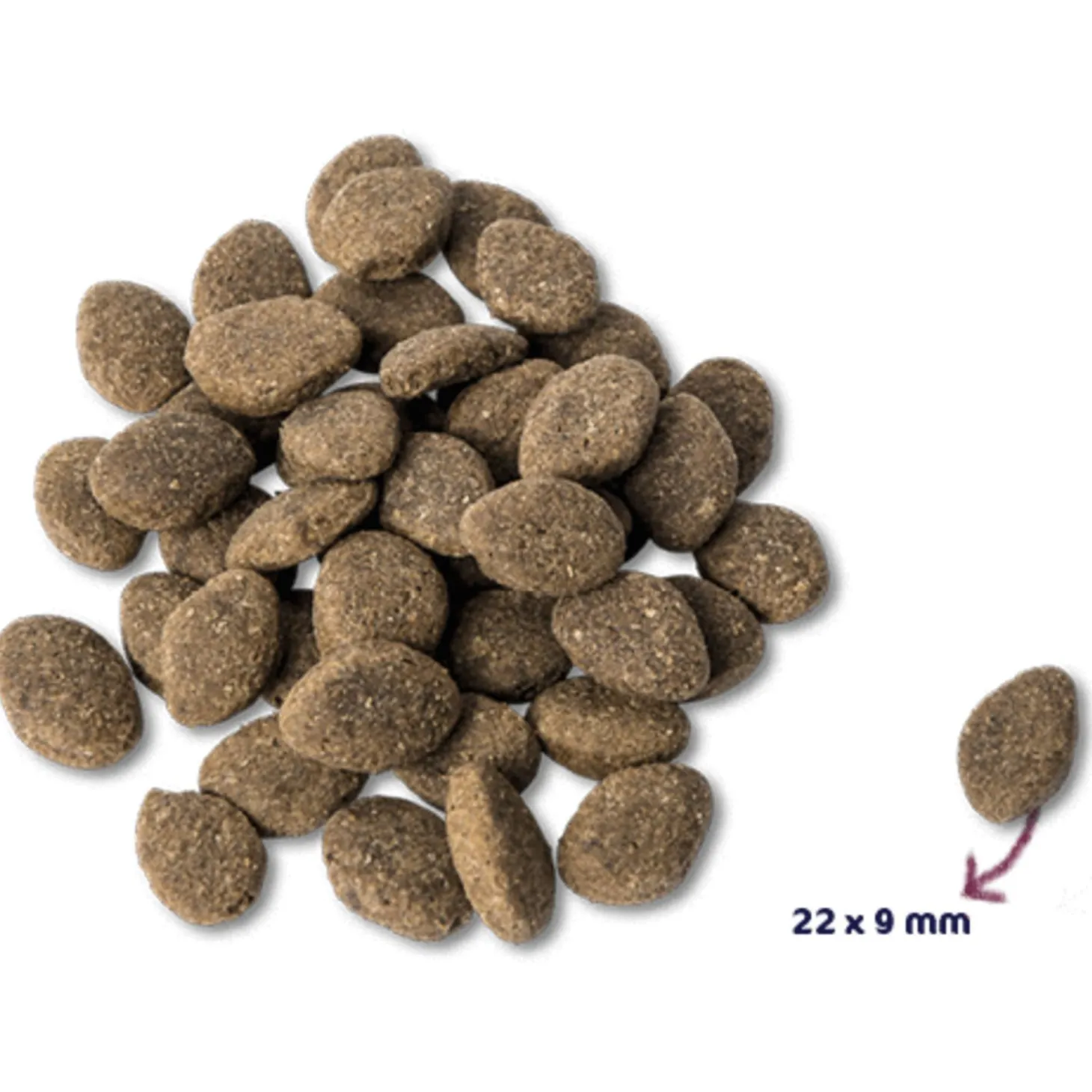 | Samenstelling | Vers bereide lam (min. 26%), zoete aardappel, aardappel (16%), gedroogde lam (12%), erwten, erwten eiwitten, lamsvet, aardappel eiwit, biergist, bietenpulp, lijnzaad, lamsbouillon, mineralen, zeewier, beta-glucanen, gedroogde cranberries (0,04%), gedroogde appel (0,04%), gedroogde peer (0,04%), gedroogde broccoli (0,04%), gedroogde tomaat (0,04%), glucosamine (170 mg/kg), methylsulfonylmethaan (MSM) (170 mg/kg), chondroïtinesulfaat (120 mg/kg). |