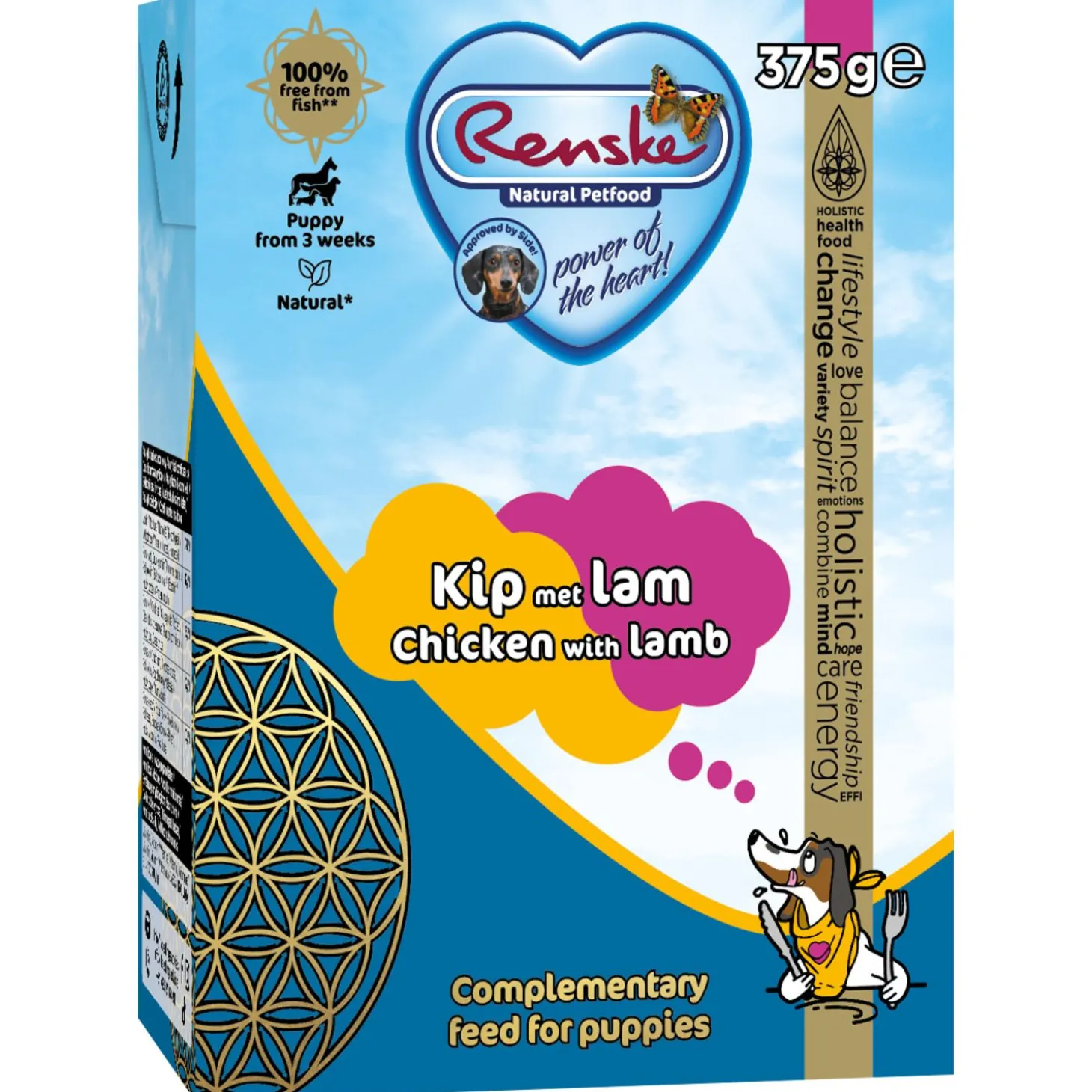 | Aanbeveling | Renske vers bereide vleesmaaltijd kip met lam is een aanvullende, glutenvrije maaltijd voor pups van alle rassen vanaf 3 weken. Het product bevat 70% vers bereide kip en lam en is aangevuld met rijst en heerlijke groenten. Deze maaltijd is speciaal voor d |