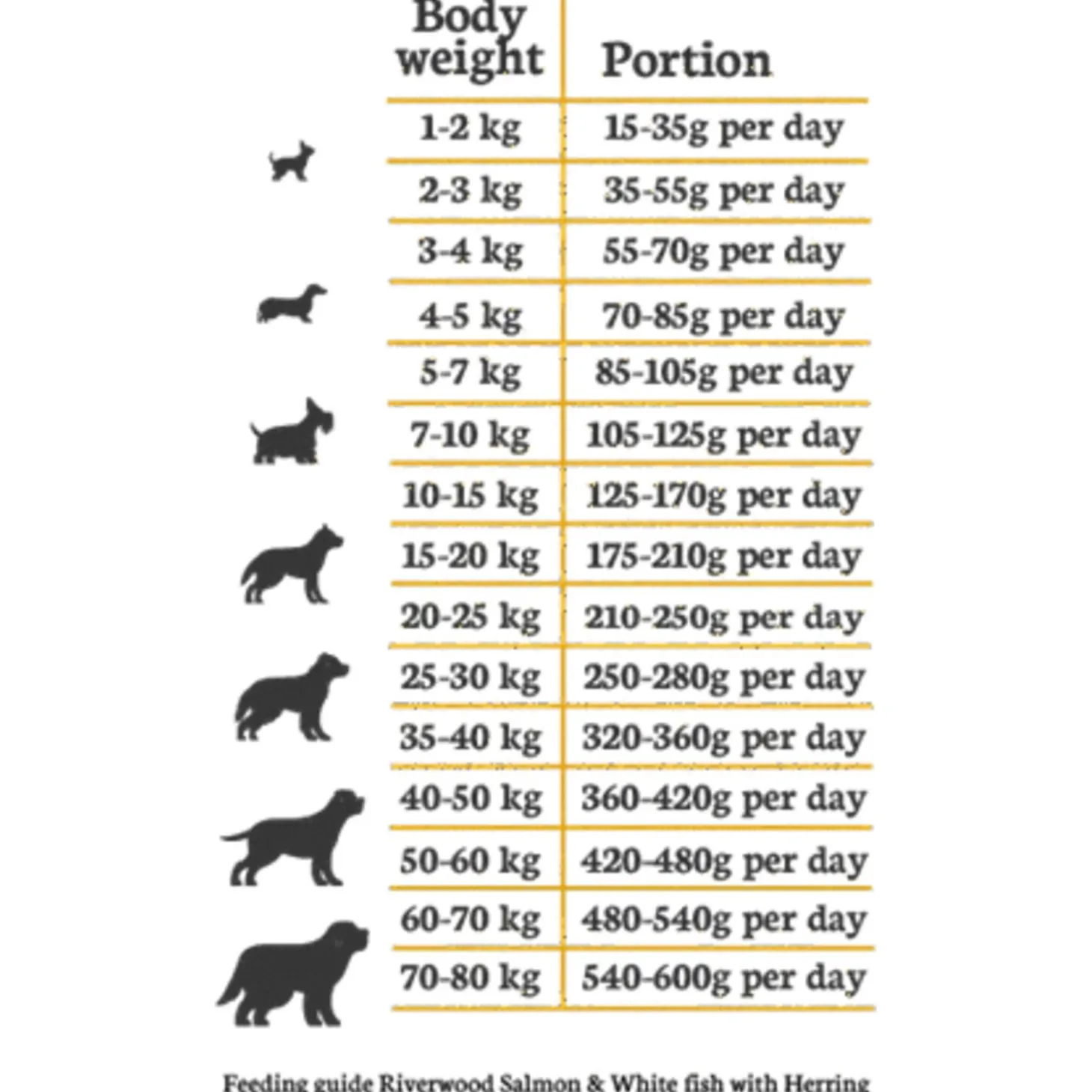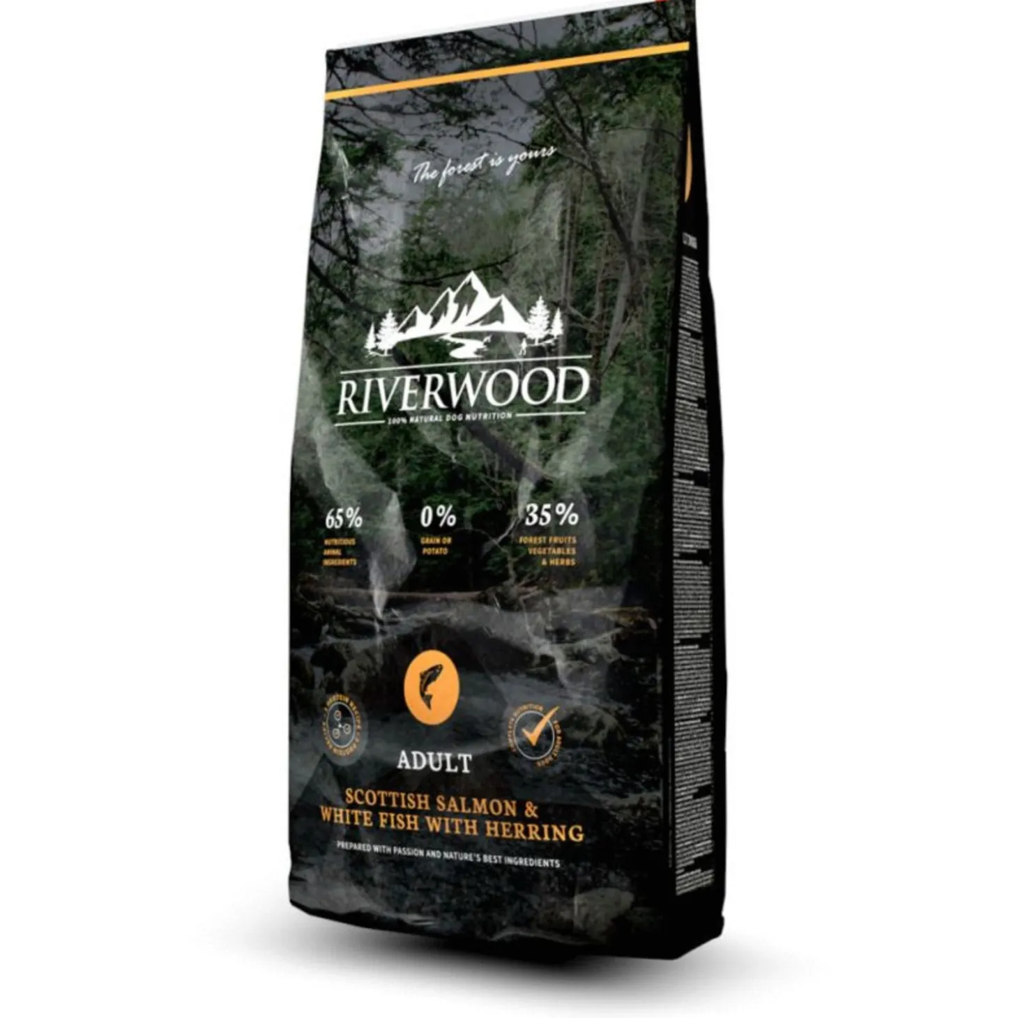 | Samenstelling | Schotse zalm (26%), witvis (16%), gele erwten (16%), gele-erwtenzetmeel (12%), haring (10%), pluimveevet (geconserveerd met tocoferolen, 9%), gedroogde appelpulp (4%), erwteneiwit (2%), gehydrolyseerd eiwit (2%), spinazie (1%), teunisbloemolie (0,5%), wortels (0,5%), glucosaminesulfaat (220 mg/kg), mannan-oligosachariden (150 mg/kg), chondroïtinesulfaat (130 mg/kg), fructo-oligosachariden (100 mg/kg), Yucca schidigera (90 mg/kg), goudsbloem (80 mg/kg), brandnetel (80 mg/kg), spirulina (35 mg/kg), kurkuma (30 mg/kg), Citrus pulp (30 mg/kg), veenbessen (30 mg/kg), kamille (25 mg/kg), kaneel (25 mg/kg) |