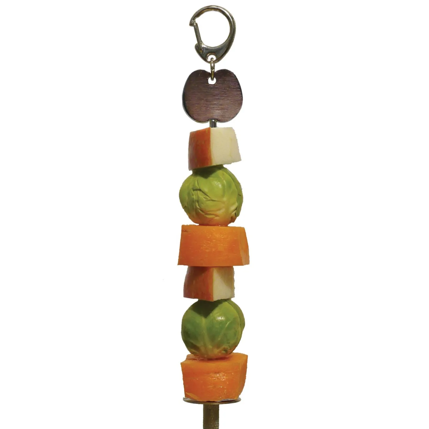 De spies kan worden verrijkt met groenten en fruit kan daarna worden opgehangen in de kooi m.b.v. een metalen clip. Door de spies te gebruiken, blijven groente en fruit langer schoon en vers dan wanneer het los in de kooi ligt. Met de Fruit & Veg Skewer zal je het natuurlijke foerageergedrag van je vogel stimuleren.