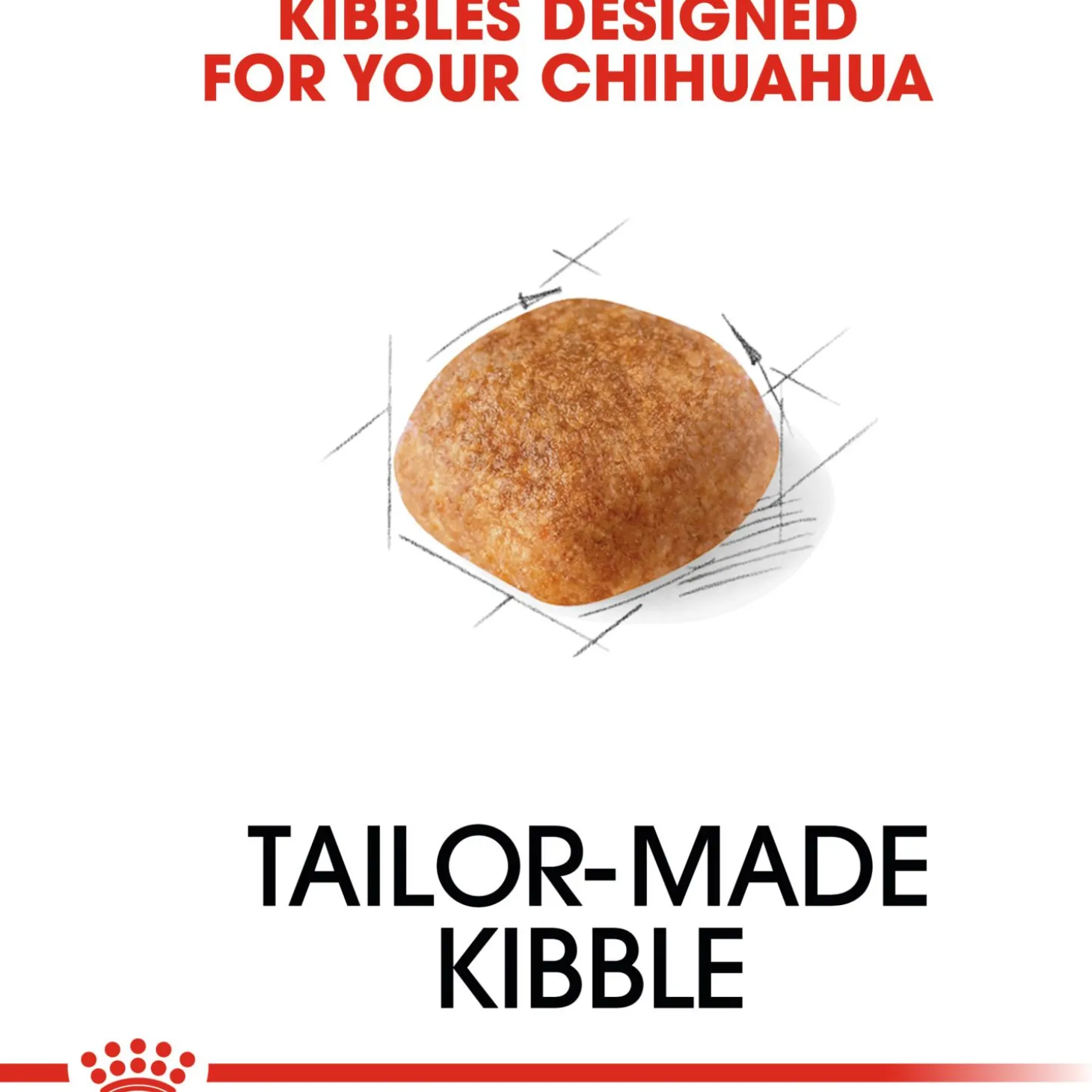 De grootte en vorm van de brokjes zijn aangepast aan de kleine kaken van de Chihuahua. De brokjes zijn gemakkelijk op te pakken en te kauwen. Daarnaast helpen de voedingsstoffen de goede darmpassage ondersteunen, wat helpt de hoeveelheid en geur van de ontlasting te verminderen.