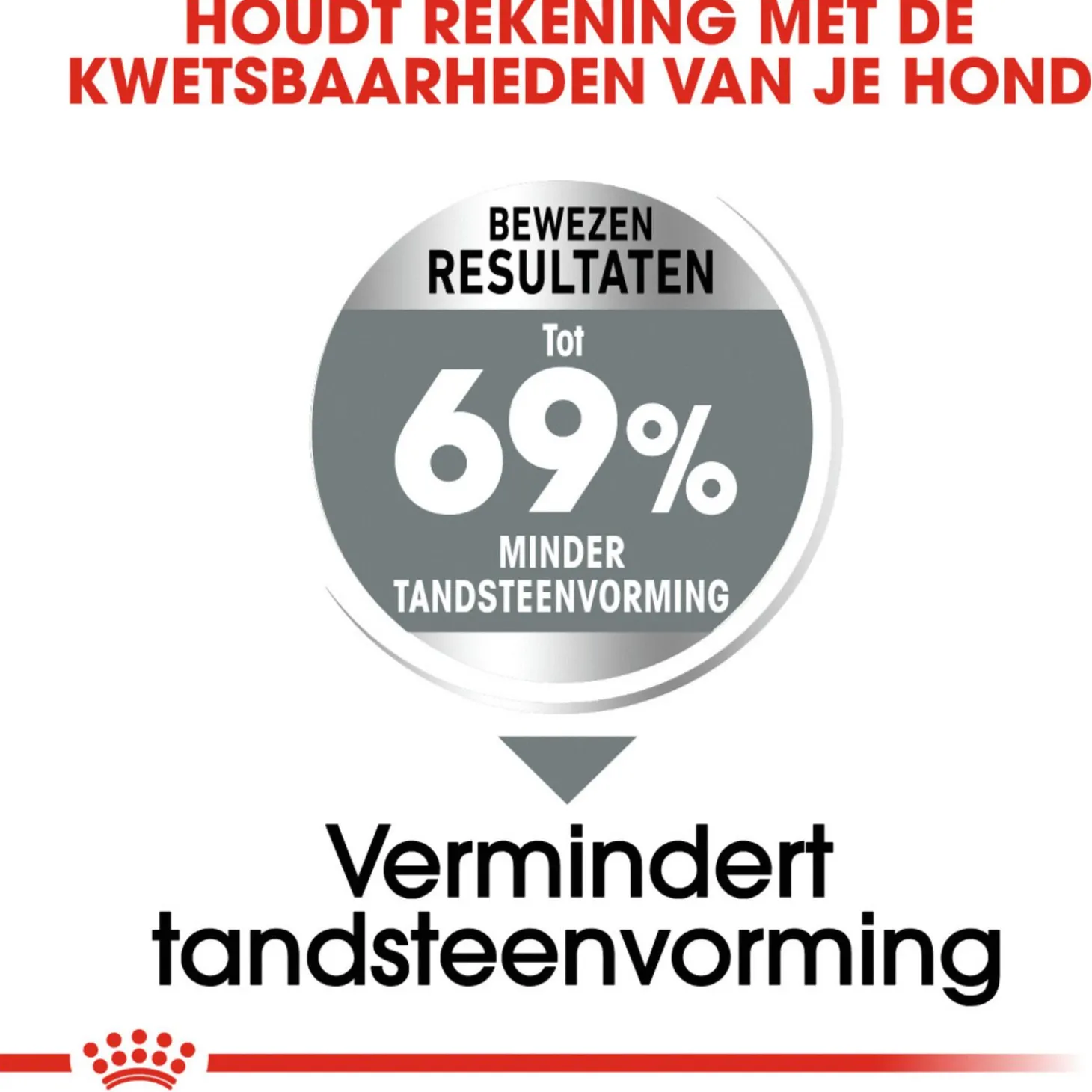 Dental Care Mini is een bewezen succes. Met wetenschappelijke testen in de kennels van Royal Canin blijkt dat de tandsteenvorming tot wel 69 procent verminderd wordt.