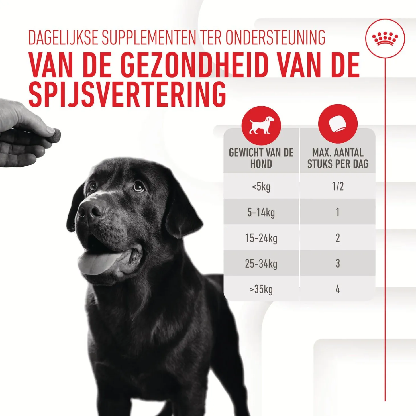 Royal Canin Digestion Chews zijn spijsverteringssupplementen die speciaal zijn ontwikkeld voor volwassen honden van alle rassen. Deze smakelijke kauwsnacks van 160 gram zijn samengesteld door dierenartsen en gebaseerd op jarenlang wetenschappelijk onderzoek naar hondenvoeding. Je hond heeft een gevoelig spijsverteringsstelsel dat soms wat extra ondersteuning kan gebruiken. Deze heerlijke supplementen zijn eenvoudig toe te voegen aan het dagelijkse voedingspatroon van je hond en ondersteunen een gezonde spijsvertering van binnenuit. Met Royal Canin Digestion Chews help je je trouwe viervoeter om comfortabeler te verteren en verbeter je de kwaliteit van de ontlasting – iets wat elke hondeneigenaar zal waarderen!