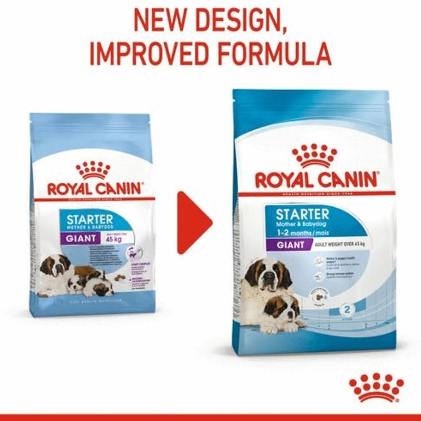 Royal Canin Giant Starter Mother & Babydog is speciaal ontwikkeld met de voedingsbehoeften van een pups en moederhonden van een zeer groot ras (45+ kg wanneer volwassen) in het achterhoofd. De brokken zijn geschikt voor puppy’s vanaf het spenen tot 2 maanden oud en hun volwassen moederhond.