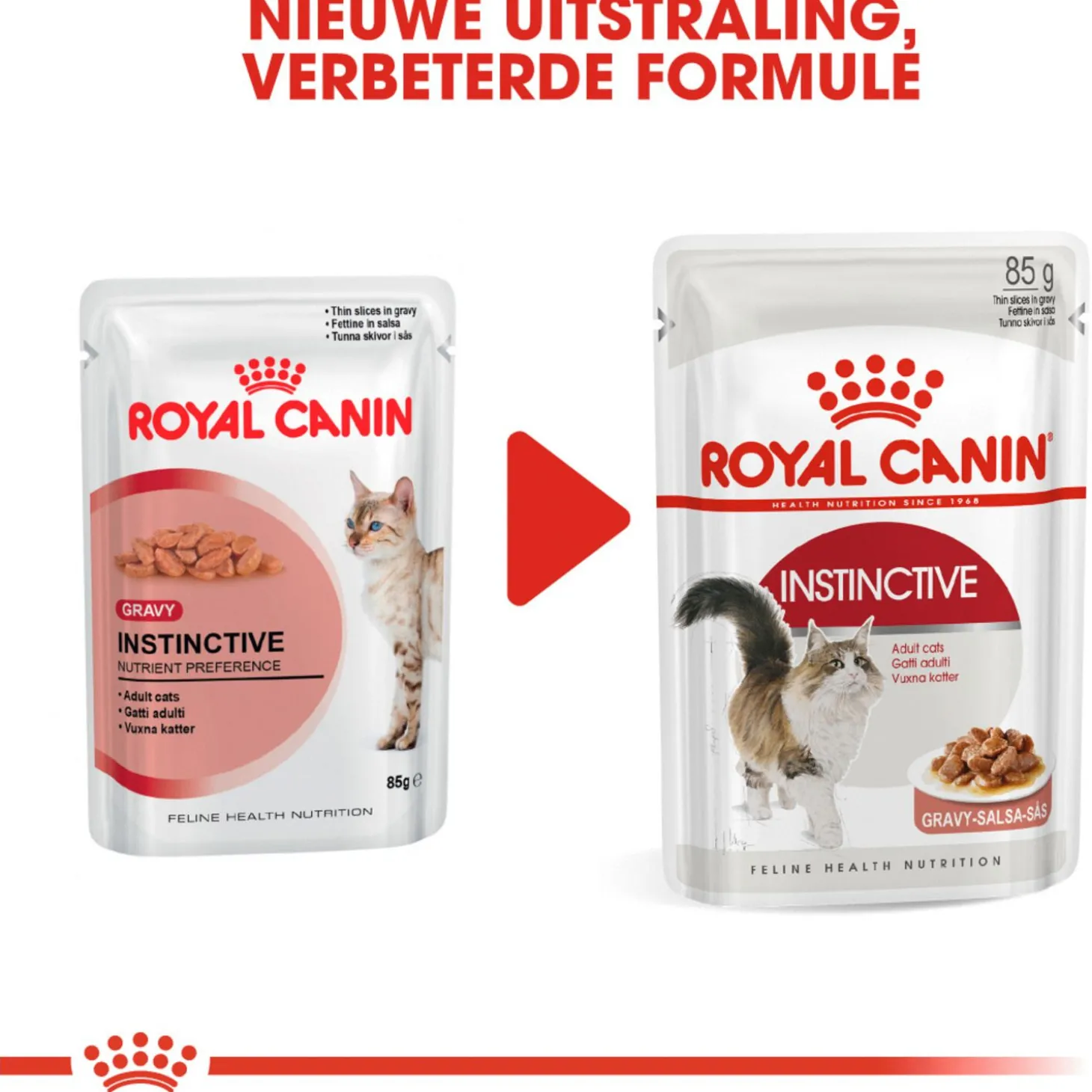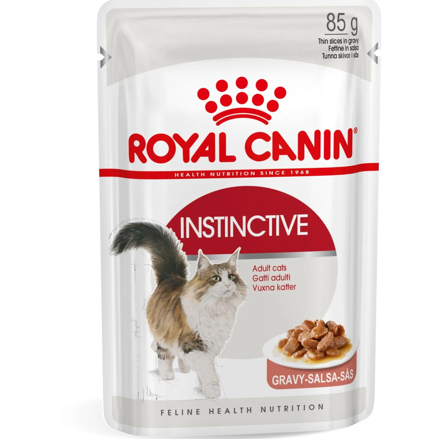 Royal Canin Instinctive in Gravy bevat 12 pouches van 85 gram.