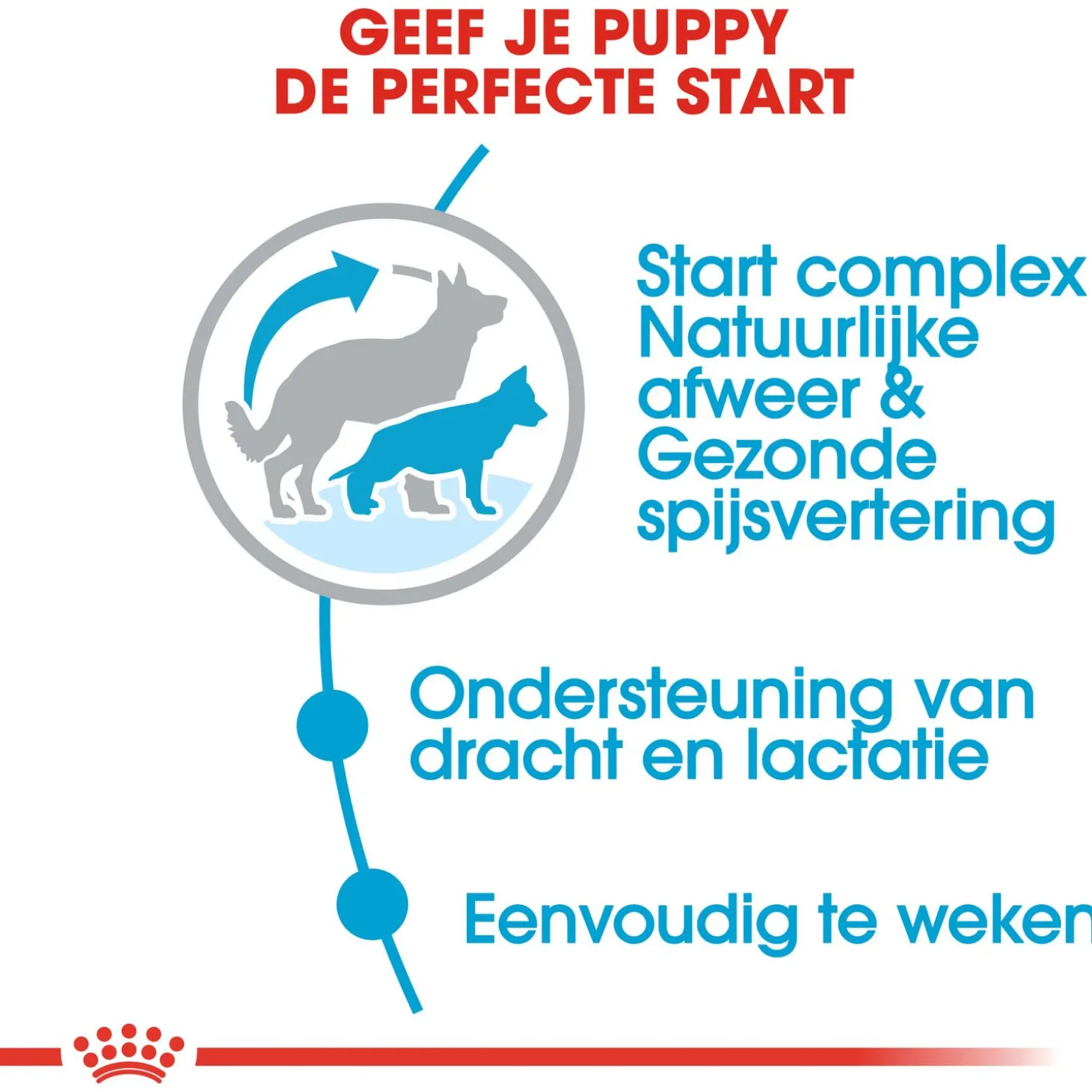 Honden van grote rassen krijgen vaak veel puppy’s, soms wel meer dan 10! Dit vraagt logischerwijze veel van het lichaam van de moederhond. Deze voeding van Royal Canin is aangepast aan de hoge energiebehoefte tijdens het einde van de dracht en tijdens het zogen.