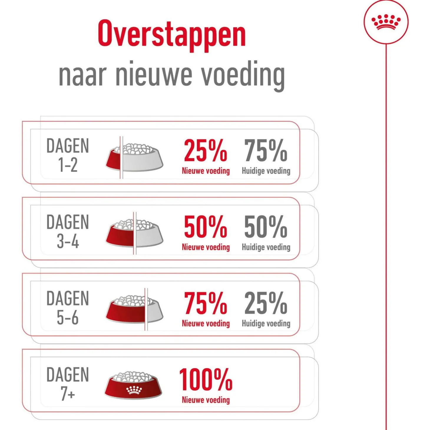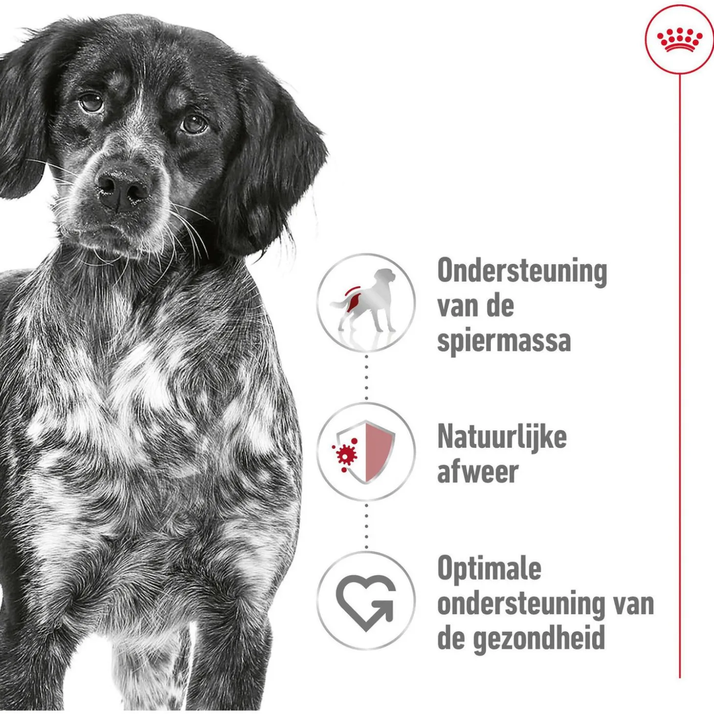 Royal Canin is toegewijd aan het leveren van voedingsoplossingen voor de behoeften van je huisdier. Alle producten ondergaan een uitgebreid kwaliteitscontroleprocesom de optimale kwaliteit van de voeding te garanderen en om te voldoen aan de specifieke voedingsbehoeften en levensstijl van jouw hond. KiesRoyal Canin Medium Adult en geef jouw hond de complete en uitgebalanceerde voeding die hij nodig heeft om gezond en gelukkig te blijven.