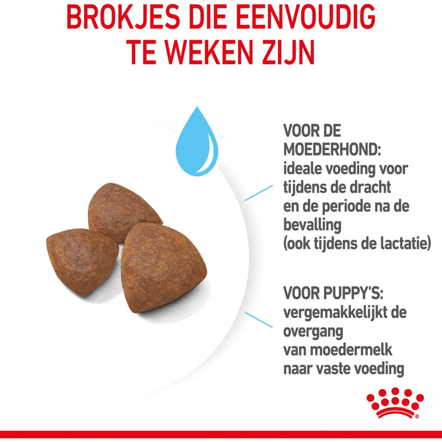 Het krijgen van een nest puppy’s moet niet onderschat worden. De moederhond moet hard werken én heeft genoeg energie nodig om haar pups te voeden. Deze voeding van Royal Canin is aangepast aan de hoge energiebehoefte tijdens het einde van de dracht en tijdens het zogen.