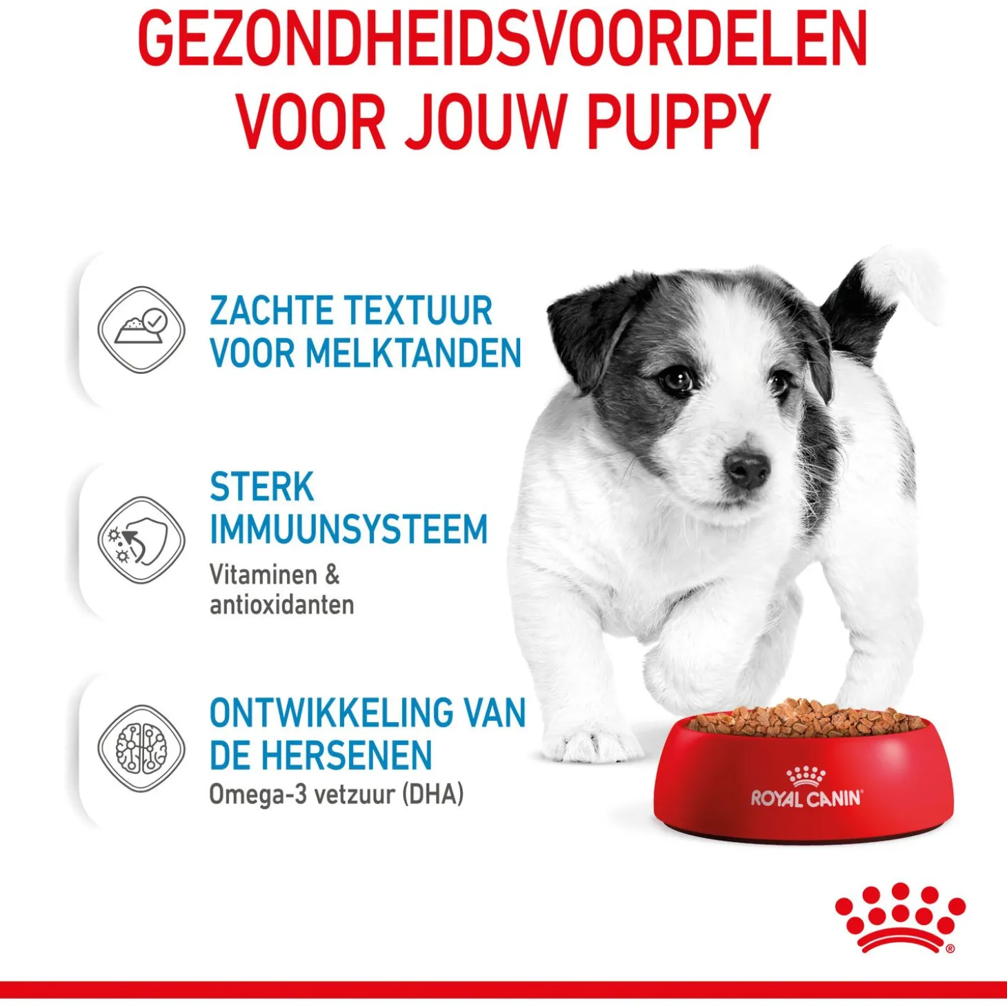 Zelfs de meest kieskeurige pups zullen smullen van Royal Canin Mini Puppy in Saus. De natvoeding biedt een fijne zintuigelijke ervaring, hydrateert het lichaam en kan daardoor ook perfect gecombineerd worden met de brokken van Royal Canin Mini Puppy.