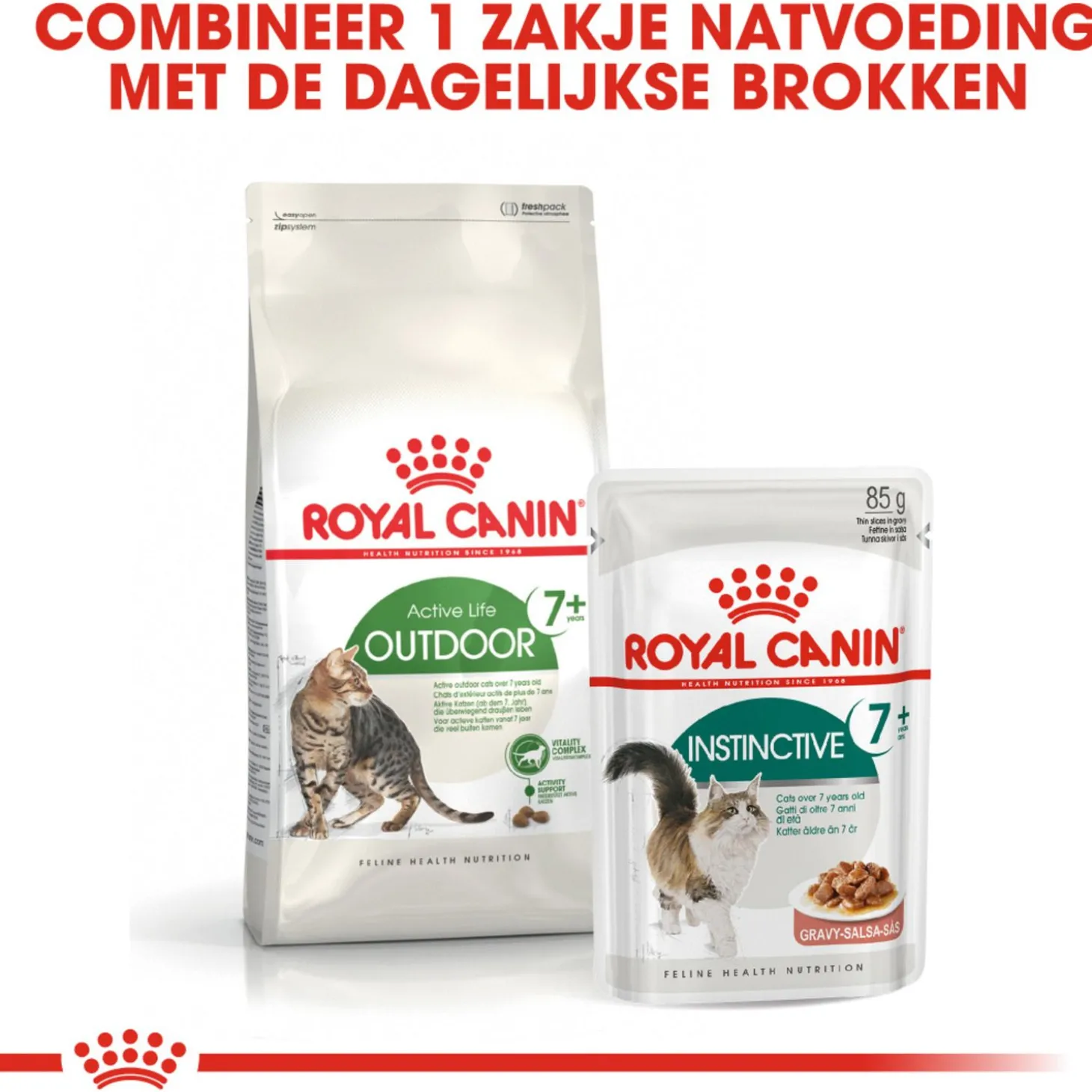 Royal Canin is toegewijd aan het leveren van voedingsoplossingen voor de behoeften van je huisdier. Alle producten ondergaan een uitgebreid kwaliteitscontroleproces om de optimale kwaliteit van de voeding te garanderen en om te voldoen aan de specifieke voedingsbehoeften en levensstijl van je kat. Als je kat Royal Canin Outdoor 7+ eet, krijgt ze een complete en uitgebalanceerde voeding voorgeschoteld.