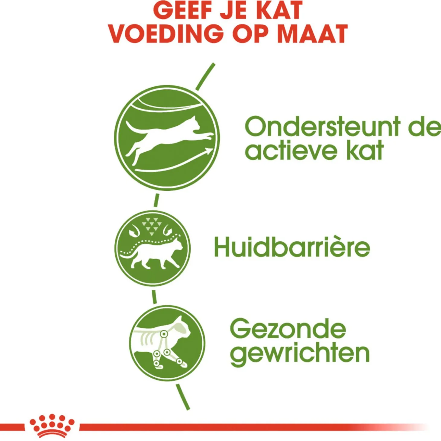 Royal Canin is toegewijd aan het leveren van voedingsoplossingen voor de behoeften van je huisdier. Alle producten ondergaan een uitgebreid kwaliteitscontroleproces om de optimale kwaliteit van de voeding te garanderen en om te voldoen aan de specifieke voedingsbehoeften en levensstijl van je kat. Als je kat Royal Canin Outdoor eet, krijgt ze een complete en uitgebalanceerde voeding voorgeschoteld.