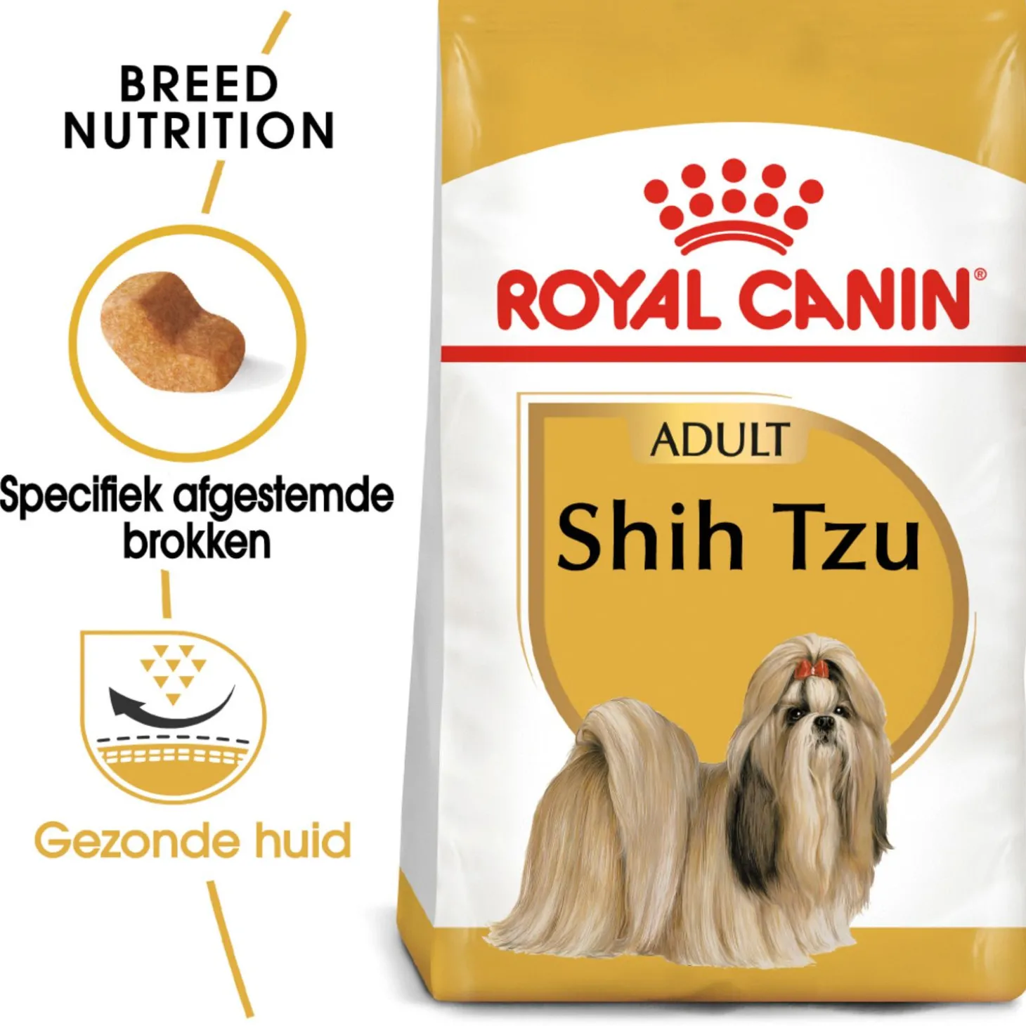 Royal Canin Shih Tzu Adult is verkrijgbaar in 1,5 kg en 7,5 kg.