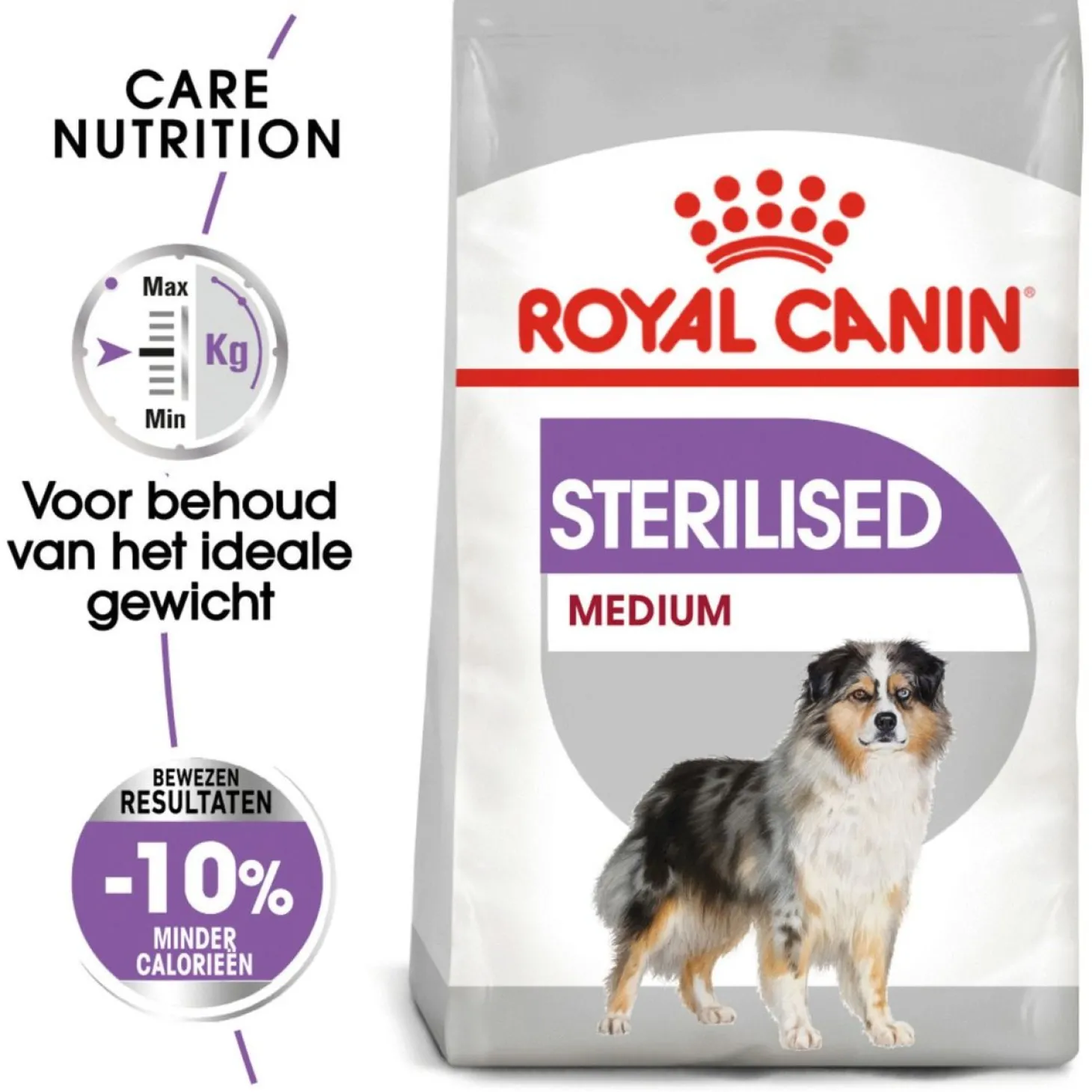 Royal Canin is toegewijd aan het leveren van voedingsoplossingen voor de behoeften van je huisdier. Alle producten ondergaan een uitgebreid kwaliteitscontroleproces om de optimale kwaliteit van de voeding te garanderen en om te voldoen aan de specifieke voedingsbehoeften en levensstijl van je hond. Als je hond Royal Canin Sterilised Medium eet, krijgt hij een complete en uitgebalanceerde voeding voorgeschoteld.