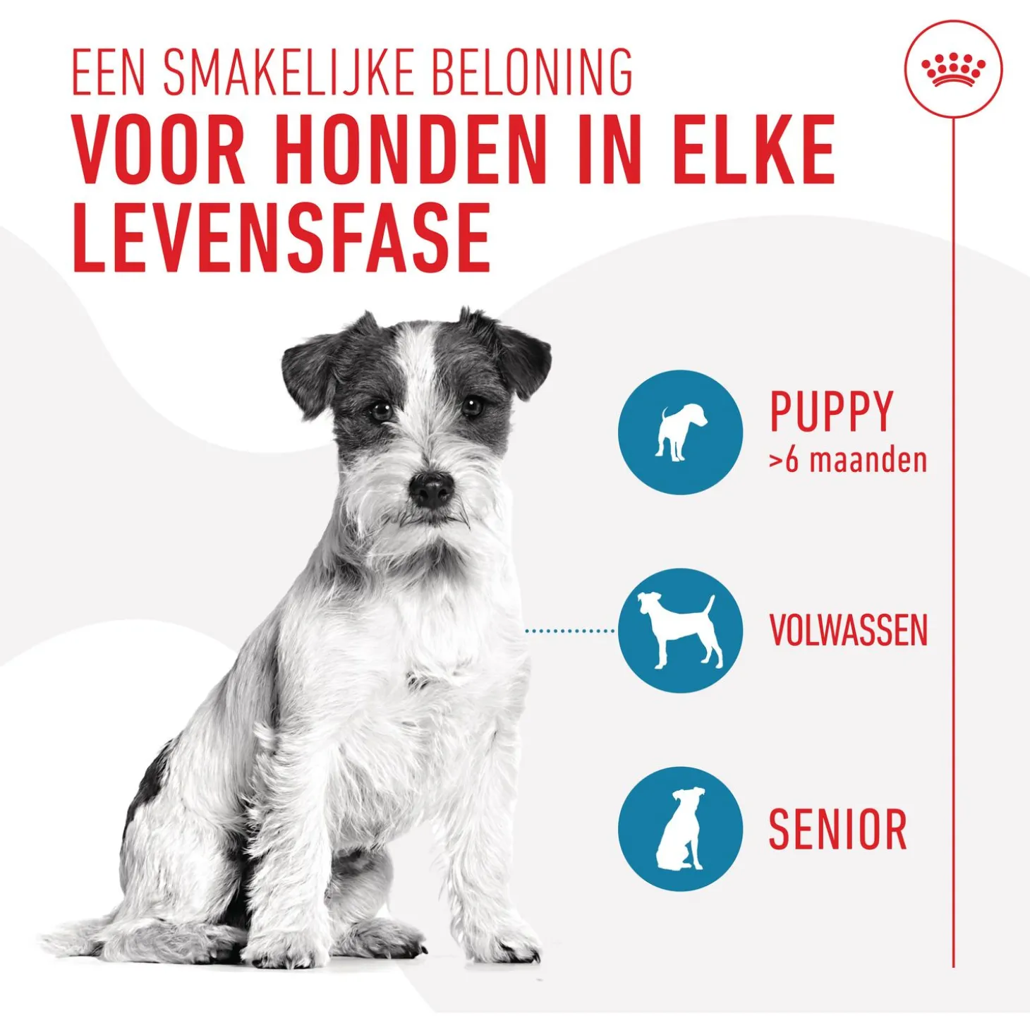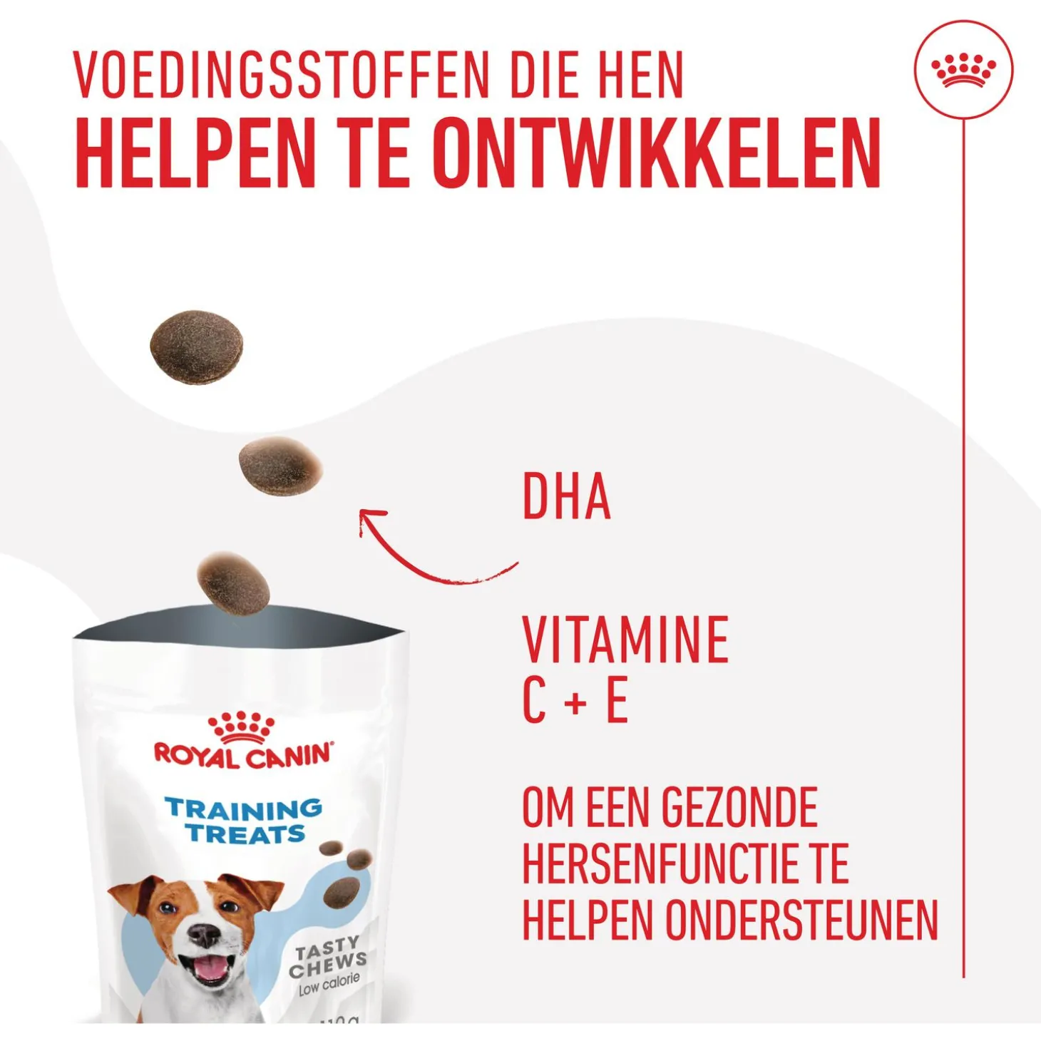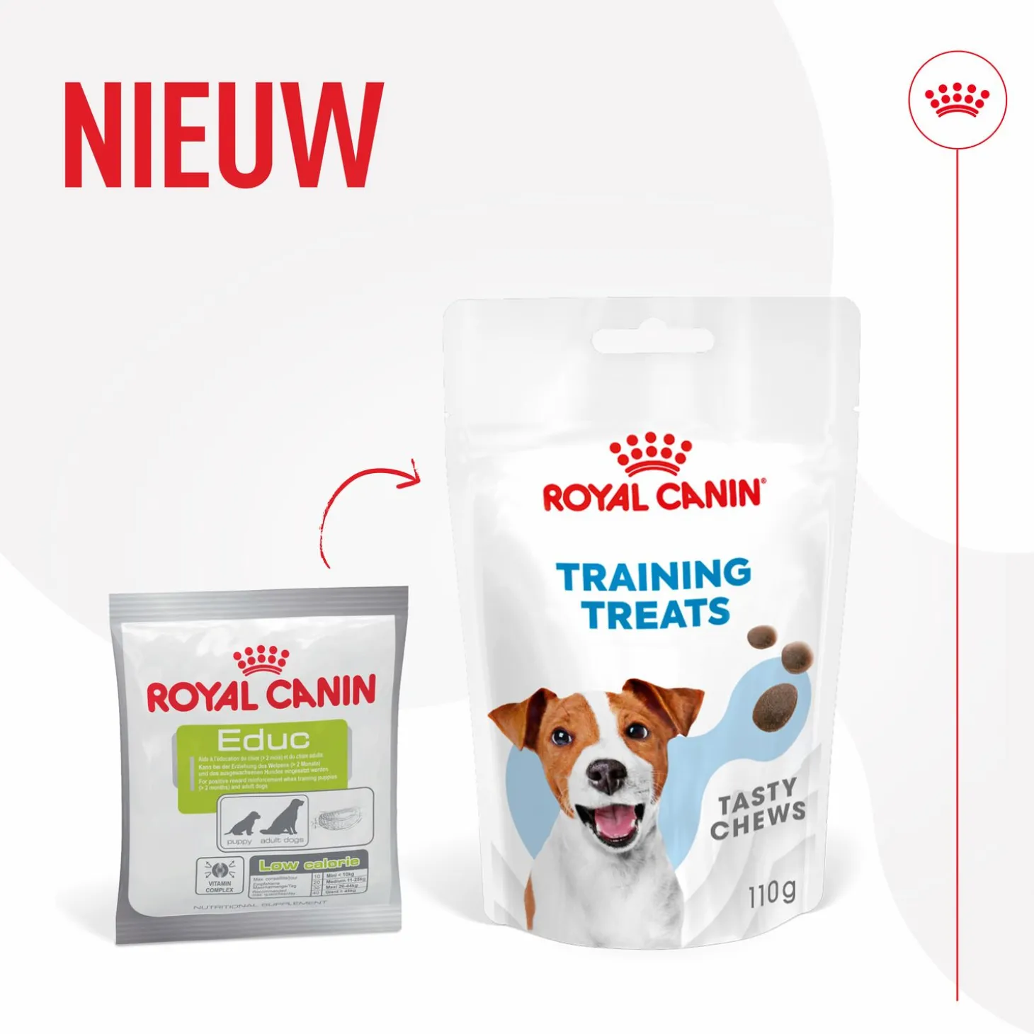 Royal Canin Training Treats zijn het resultaat van uitgebreid wetenschappelijk onderzoek en bieden het perfecte hulpmiddel voor effectieve hondentraining. De combinatie van heerlijke smaak en lage caloriewaarde maakt het mogelijk om je hond regelmatig te belonen zonder schuldgevoel. De toevoeging van DHA en vitaminen ondersteunt bovendien de hersenfunctie, waardoor je hond niet alleen geniet van een lekkere snack, maar ook cognitieve ondersteuning krijgt tijdens het leerproces. Deze treats zijn zorgvuldig ontwikkeld om naadloos aan te sluiten bij elke Royal Canin voeding, zodat je hond zijn normale eetpatroon kan behouden terwijl hij wordt beloond voor goed gedrag. Begin vandaag nog met effectievere training en bestel Royal Canin Training Treats voor je trouwe viervoeter!