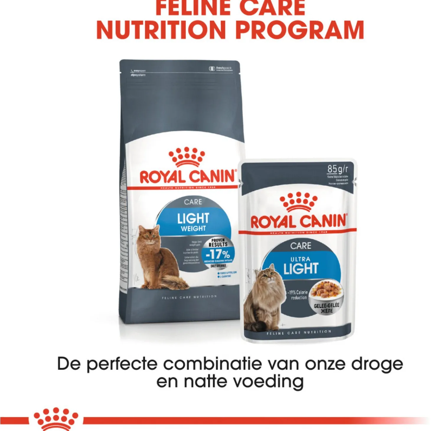Royal Canin Ultra Light in Jelly bevat 12 pouches van 85 gram.