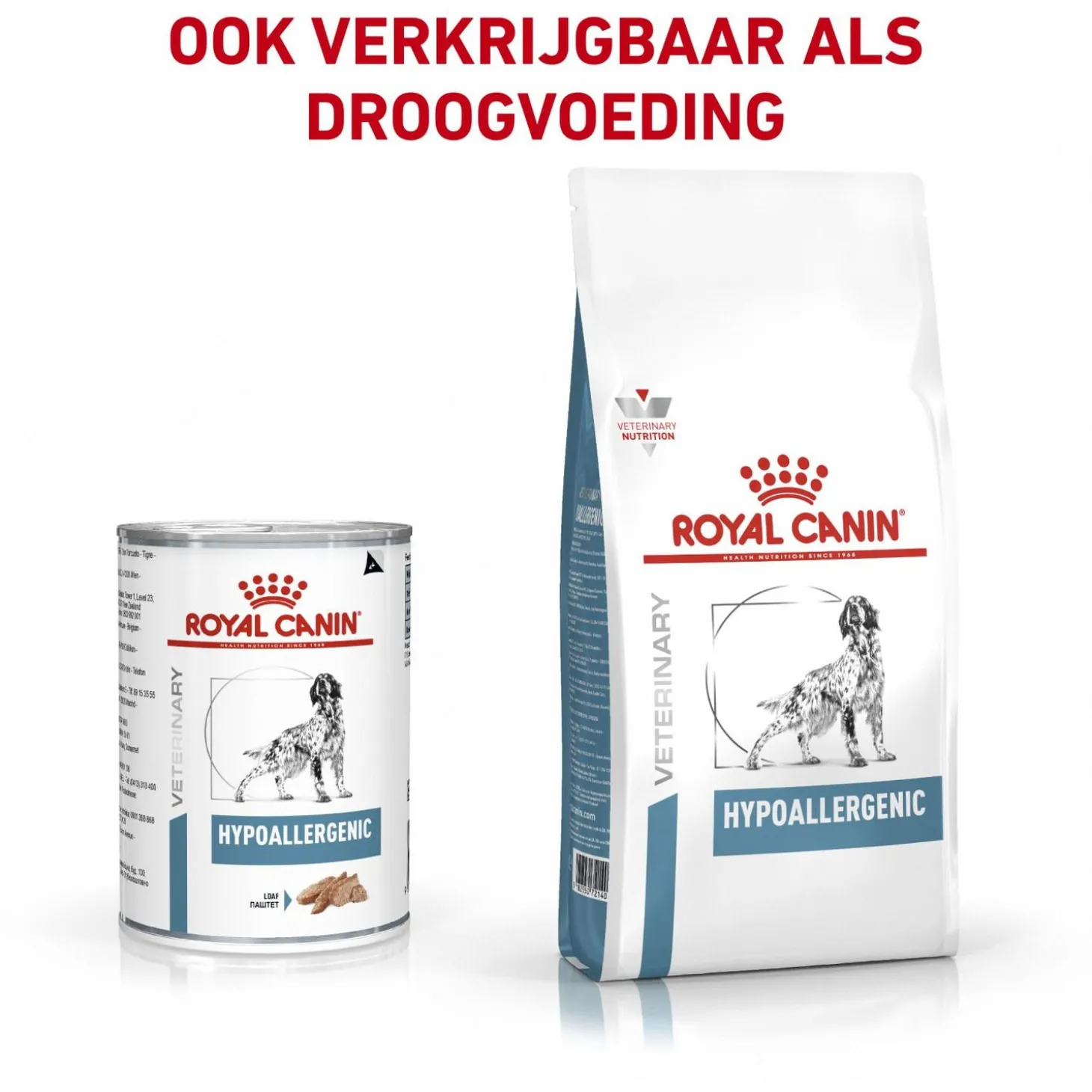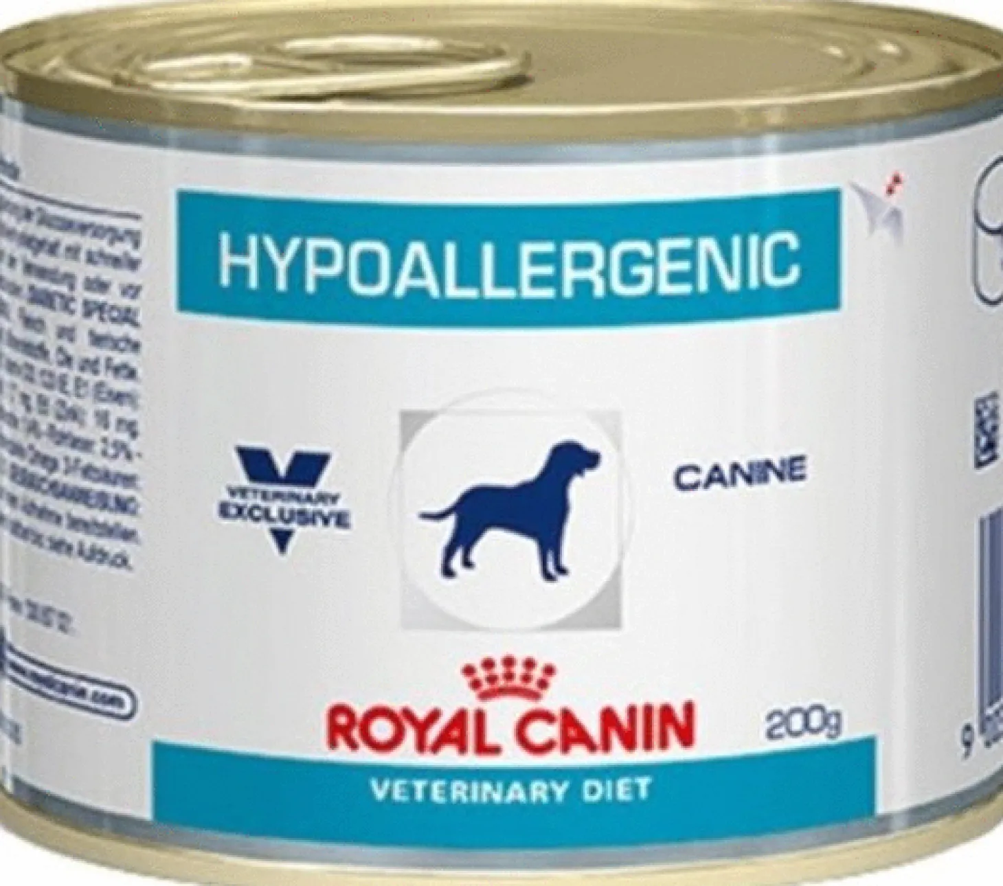 Royal Canin Veterinary Diet Hypoallergenic Wet is verkrijgbaar in 200 gr en 400 gr blikken.