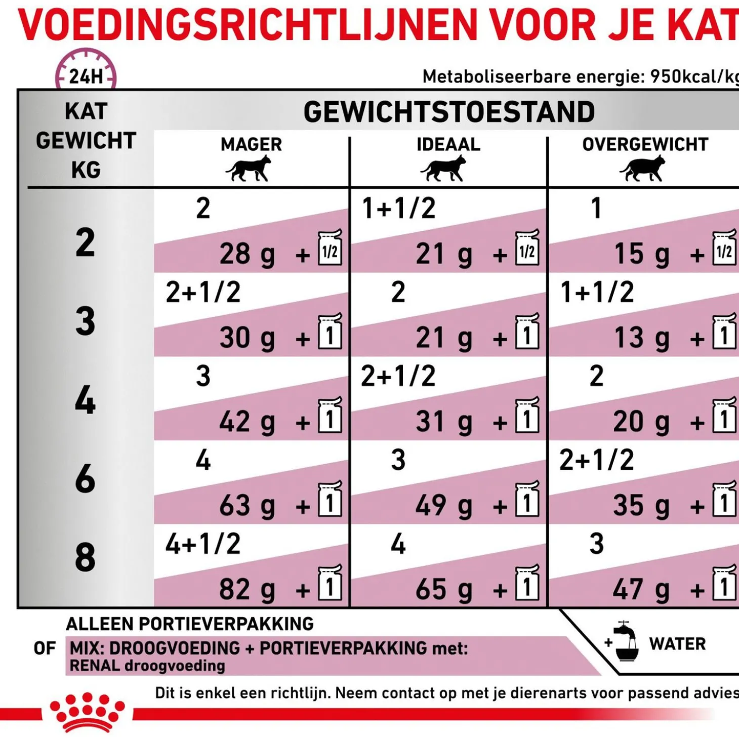 Voeding speelt een belangrijke rol bij het behandelen van nierproblemen. Renal with Fish is een natvoer speciaal ontwikkeld om de nierfunctie te ondersteunen bij een chronische aandoening. Zo bieden het lage fosforgehalte en het matige eiwitgehalte ondersteuning aan de nieren.