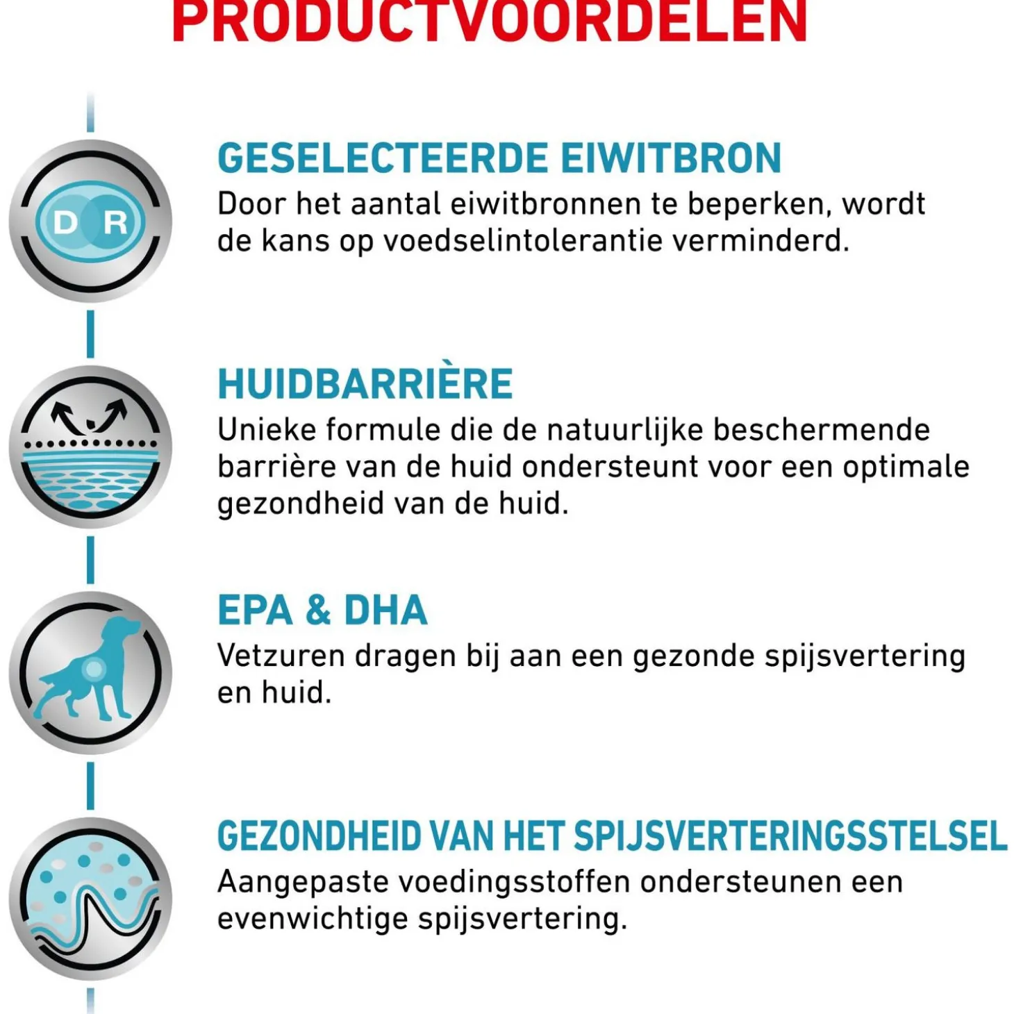 Niet alle honden reageren even goed op alle voedingsstoffen. Merk je dat jouw hond last heeft van jeuk, huidontstekingen of oorpijn? Of wellicht maag- en darmproblemen zoals winderigheid, diarree en braken? Dan kan hij nog wel eens last hebben van voedselintolerantie. Royal Canin Sensitivity Control natvoeding met eend en rijst kan je hond hierbij ondersteunen.