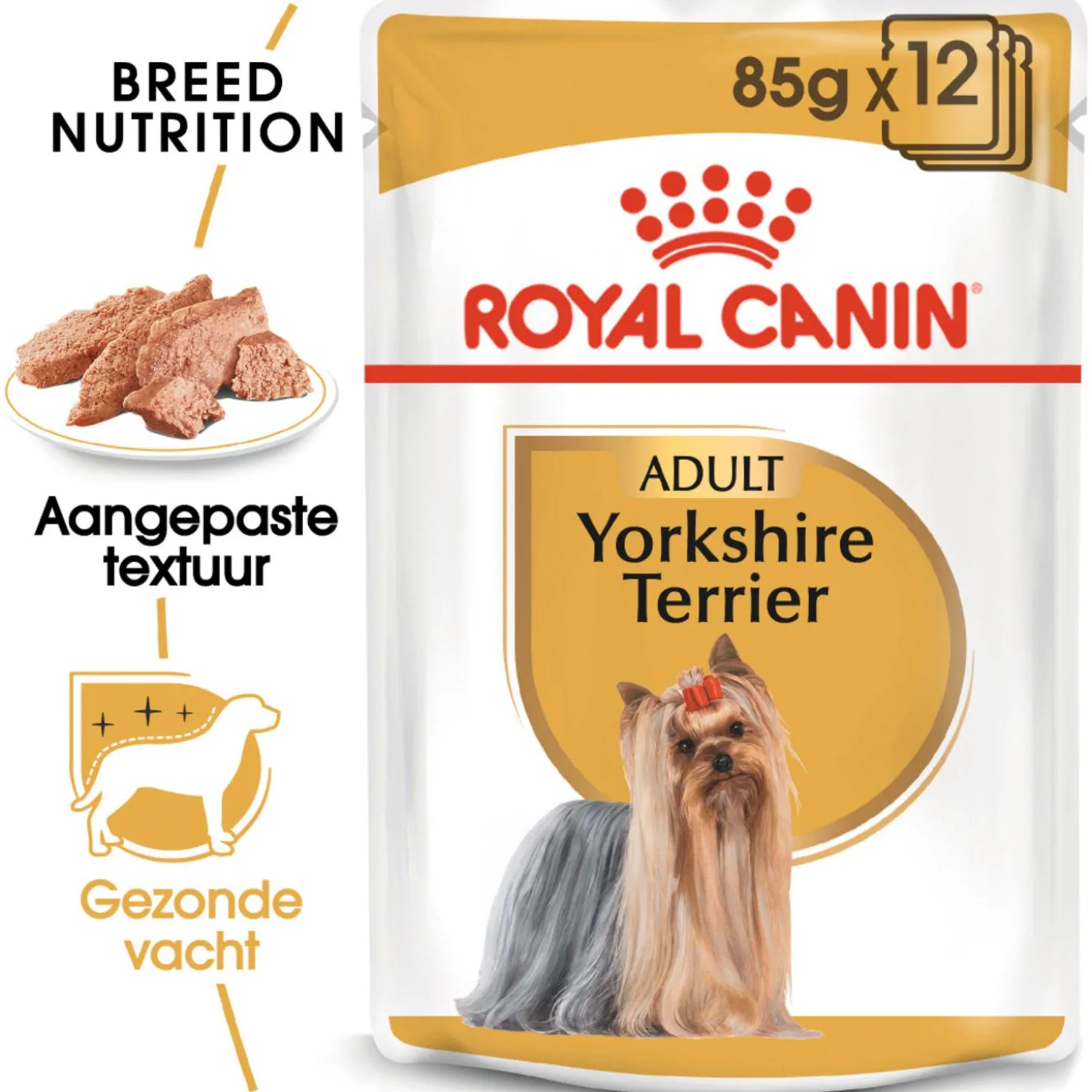 Royal Canin Yorkshire Terrier Adult natvoer bevat 12 pouches van 85 gr.