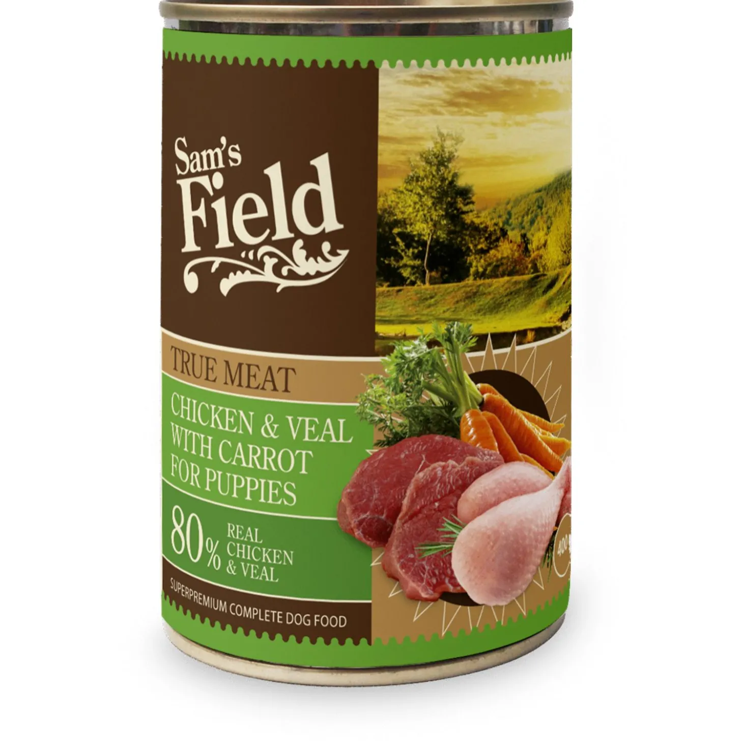 Sam’s Field True Meat bevat 6 x 400 gram (in de winkel per stuk verkrijgbaar).