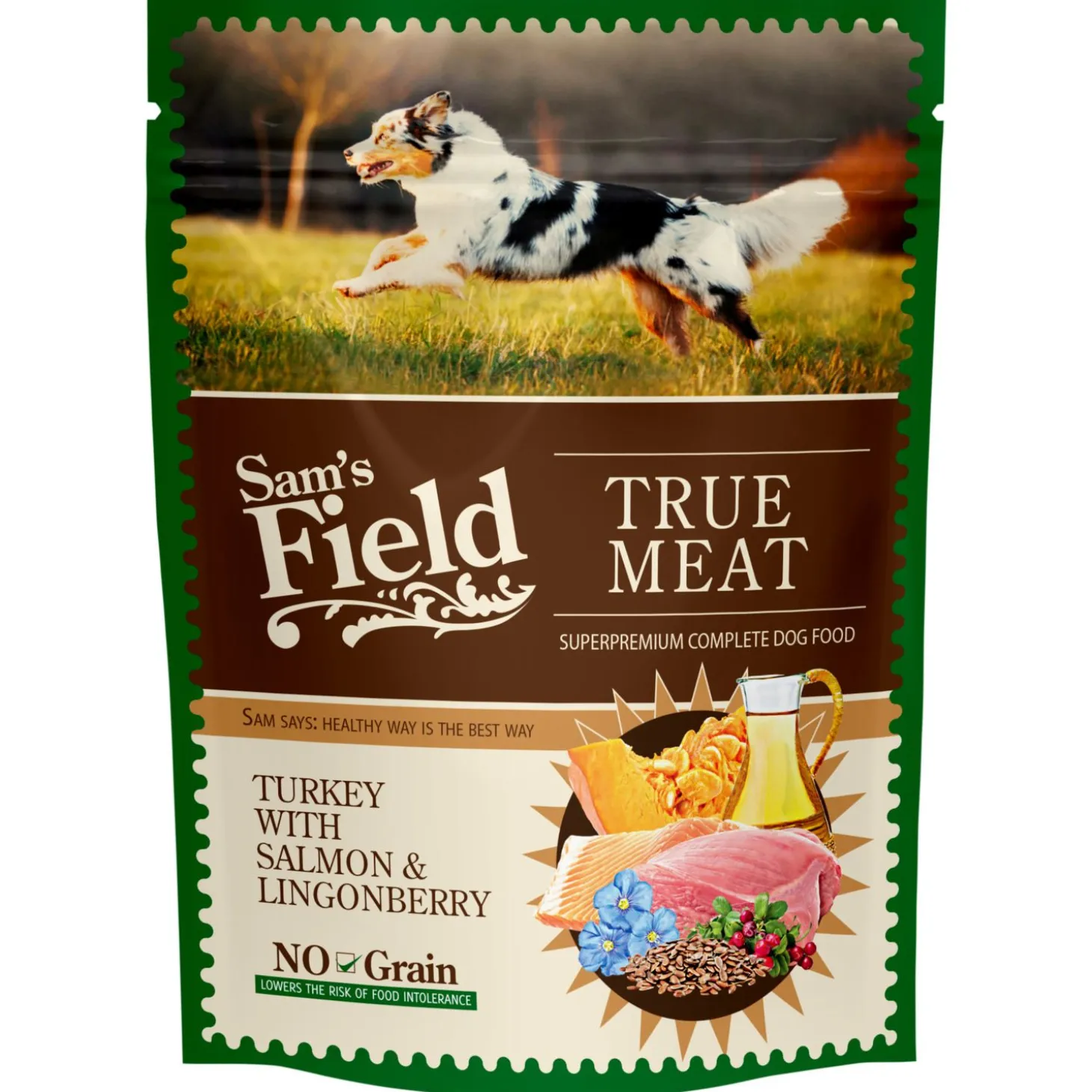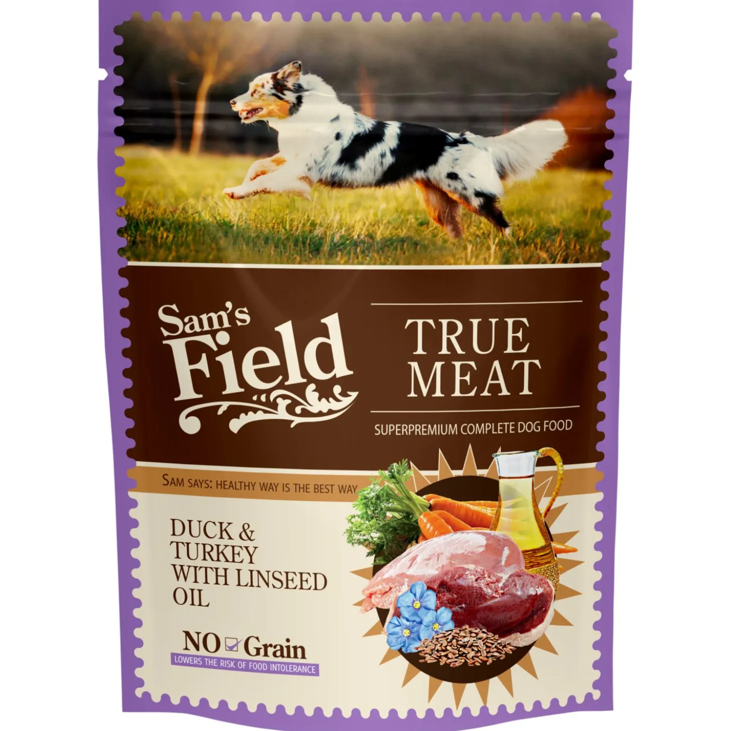 Wanneer je het beste voor hebt met je hond, geef je hem natuurlijk een voeding die goed aansluit op zijn dagelijkse behoeften. Een verantwoorde keuze zijn de voedingen van Sam’s Field, zoals de superpremium blikvoedingen in het Sam’s Field Pouches-assortiment. Deze superpremium blikvoedingen bevatten tot 65% aan vlees en zijn geheel graanvrij. Daarnaast bevat deze voeding geen soja en geen kunstmatige conserveermiddelen of kleurstoffen. Kortom, een heerlijke- en gezonde maaltijd voor je hond. De voeding is verkrijgbaar in 5 varianten: