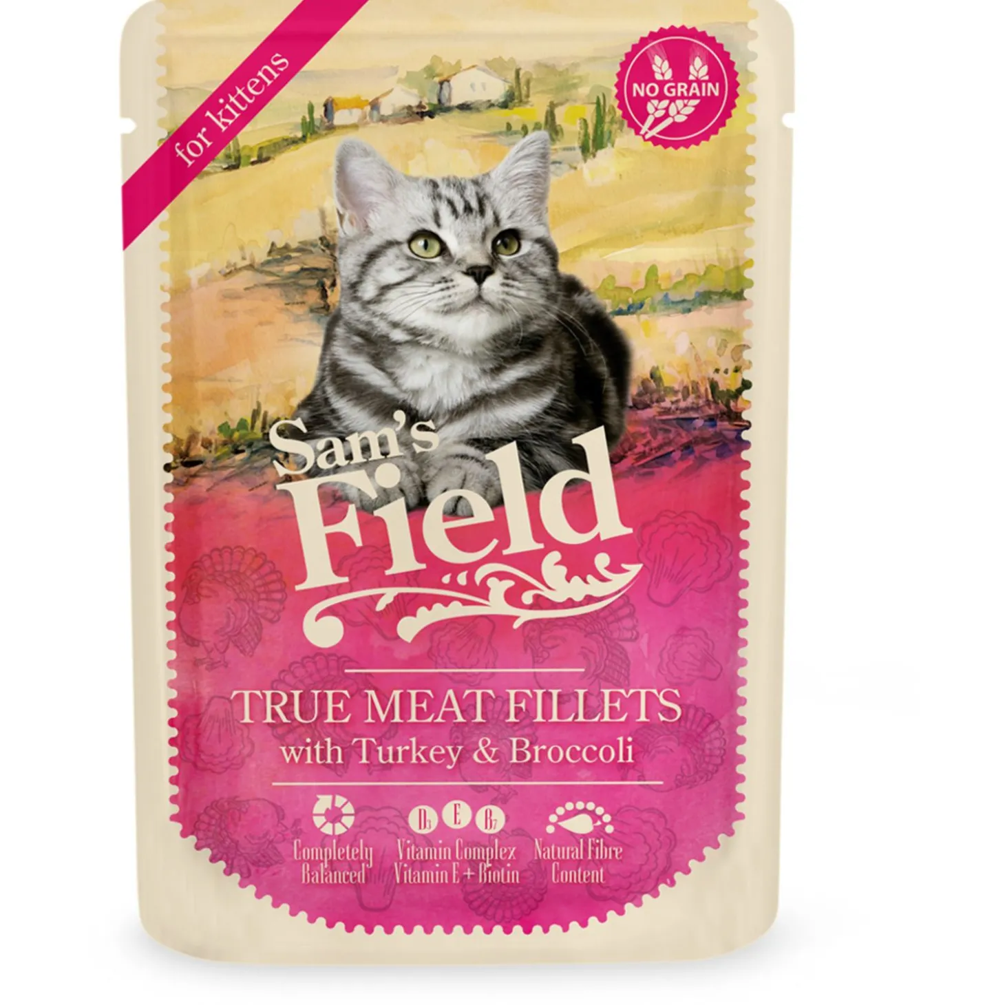 Wanneer je het beste voor hebt met je kitten, geef je hem natuurlijk een voeding die goed aansluit op zijn dagelijkse behoeften. Een verantwoorde keuze zijn de voedingen van Sam’s Field, zoals Sam’s Field Meat Fillets with Turkey & Broccoli, speciaal voor kittens van 2 tot 12 maanden oud. Deze natuurlijke natvoeding met 85% vlees is een heerlijke maaltijd voor je jonge kat.