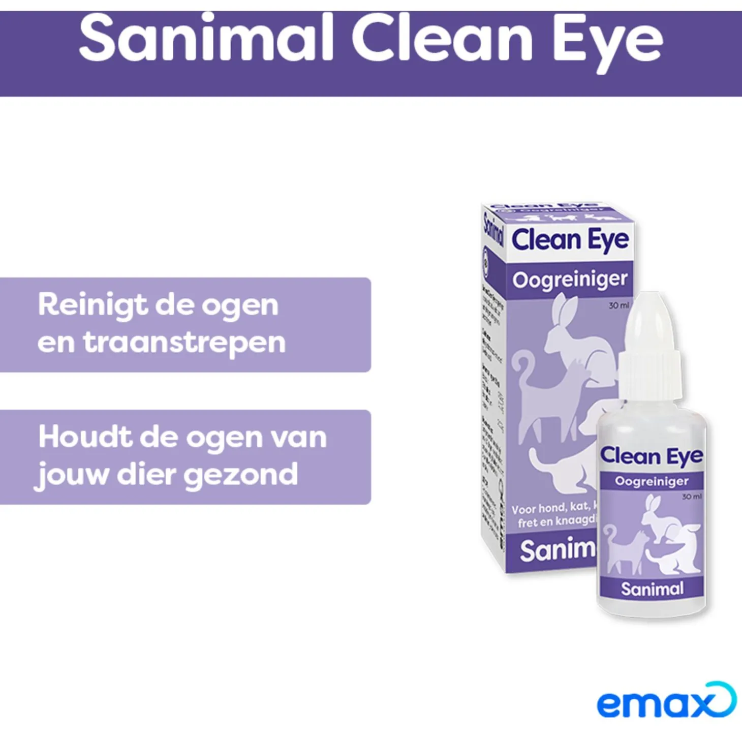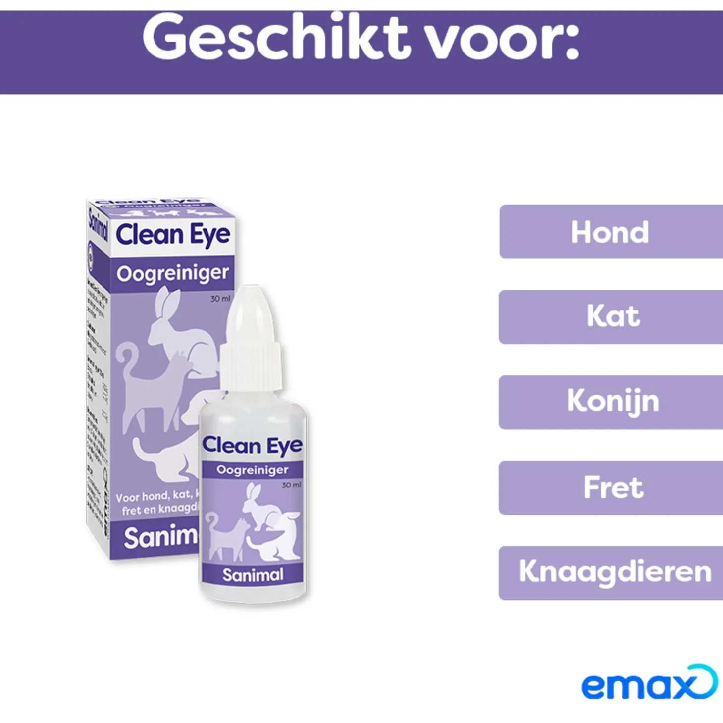 Clean Eye oogreiniger is een vloeistof welke speciaal is ontwikkeld voor het reinigen van ogen en traanstrepen van alle gezelschapsdieren vanaf 3 weken oud. De vloeistof kan rechtstreeks in de ogen worden gedruppeld.