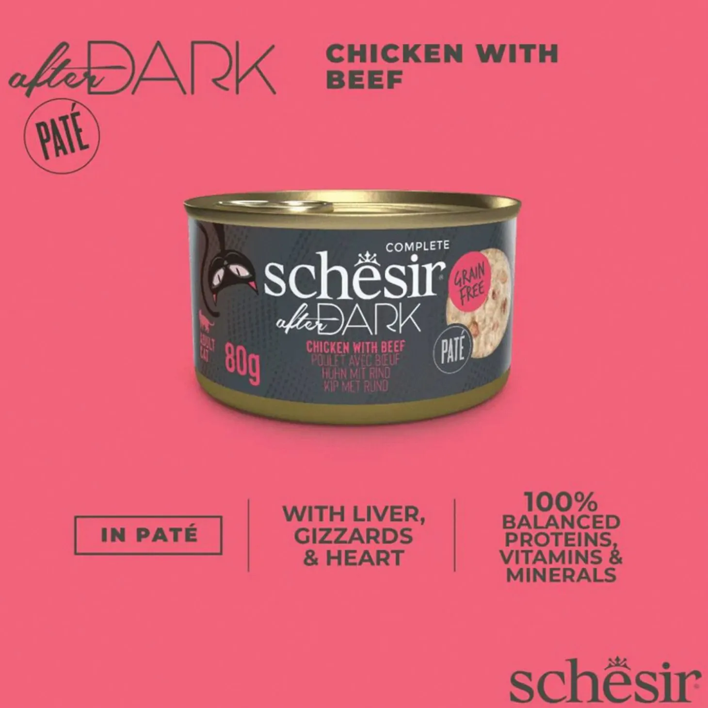 - rijk aan eiwitten, van echte kip en organen, plus rundvlees 4. in smakelijke gemalen paté5. rijk aan vloeistof, voor de hydratatie die uw kat nodig heeft6. graanvrij7. minimaal bewerkte kwaliteitsingrediënten met een hoge voedingswaa