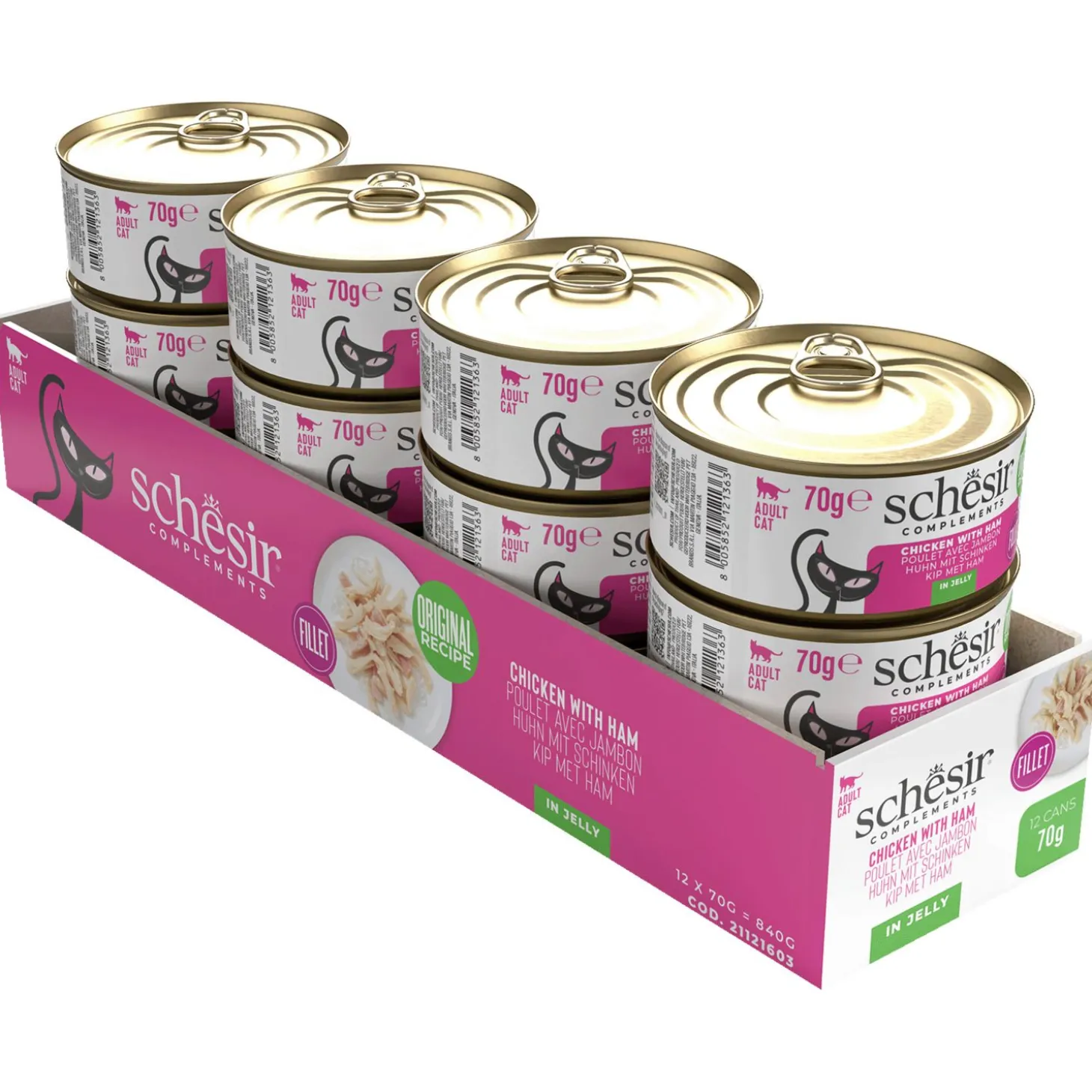 De Schesir natvoedingen zijn 100% natuurlijk en bevatten een hoog gehalte aan vis of vlees. Daarnaast zijn er enorm veel verschillende smaakvarianten beschikbaar. Zelfs de moeilijkst etende katten zullen een lekkere smaak vinden!
