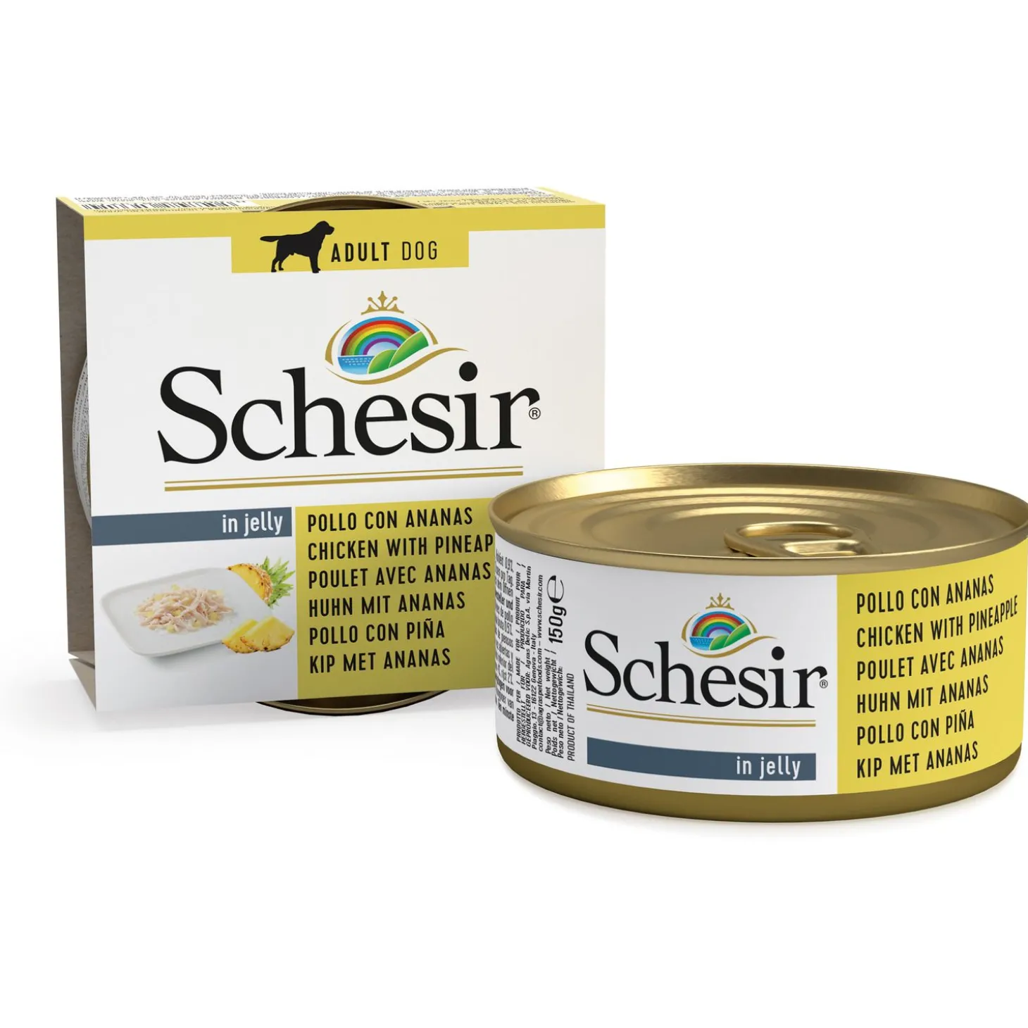 | Samenstelling | kipfilet 62,2%, ananas 4%, rijst 2%. |