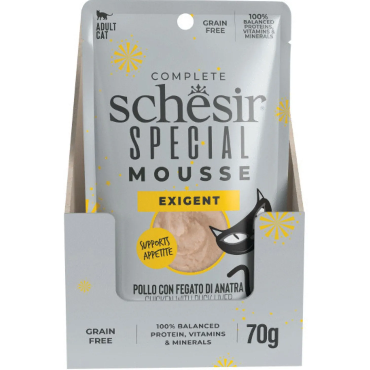 - ontworpen voor de meest veeleisende katten3. rijk aan eiwitten, van echt vlees en vis4. in zachte, fluweelzachte mousse, perfect voor de meest veeleis