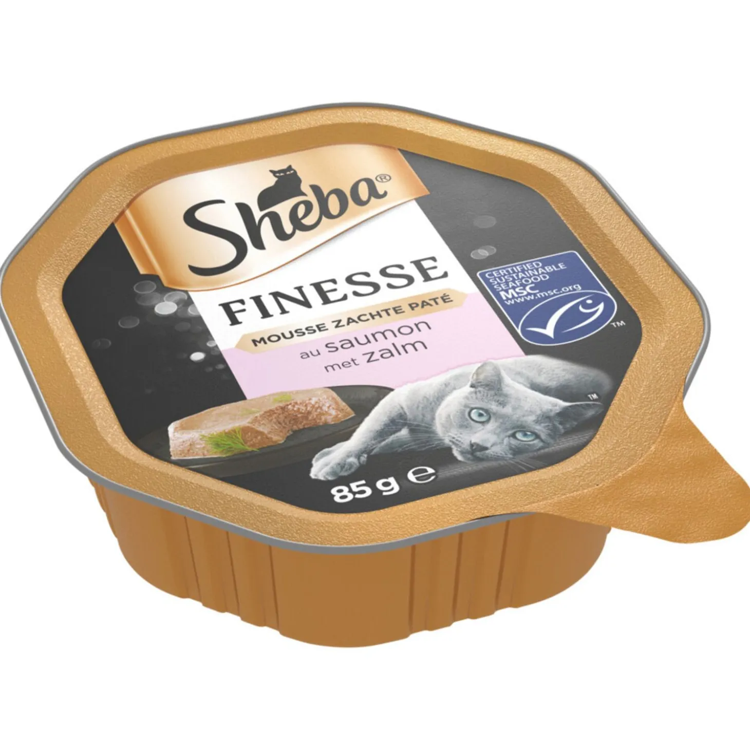 De Sheba Finesse Mousse is een zachte smeltende mousse met geselecteerde ingrediënten voor elke dag. De mousse heeft een fijne textuur die makkelijk verteerbaar is, smakelijk en verfijnd.