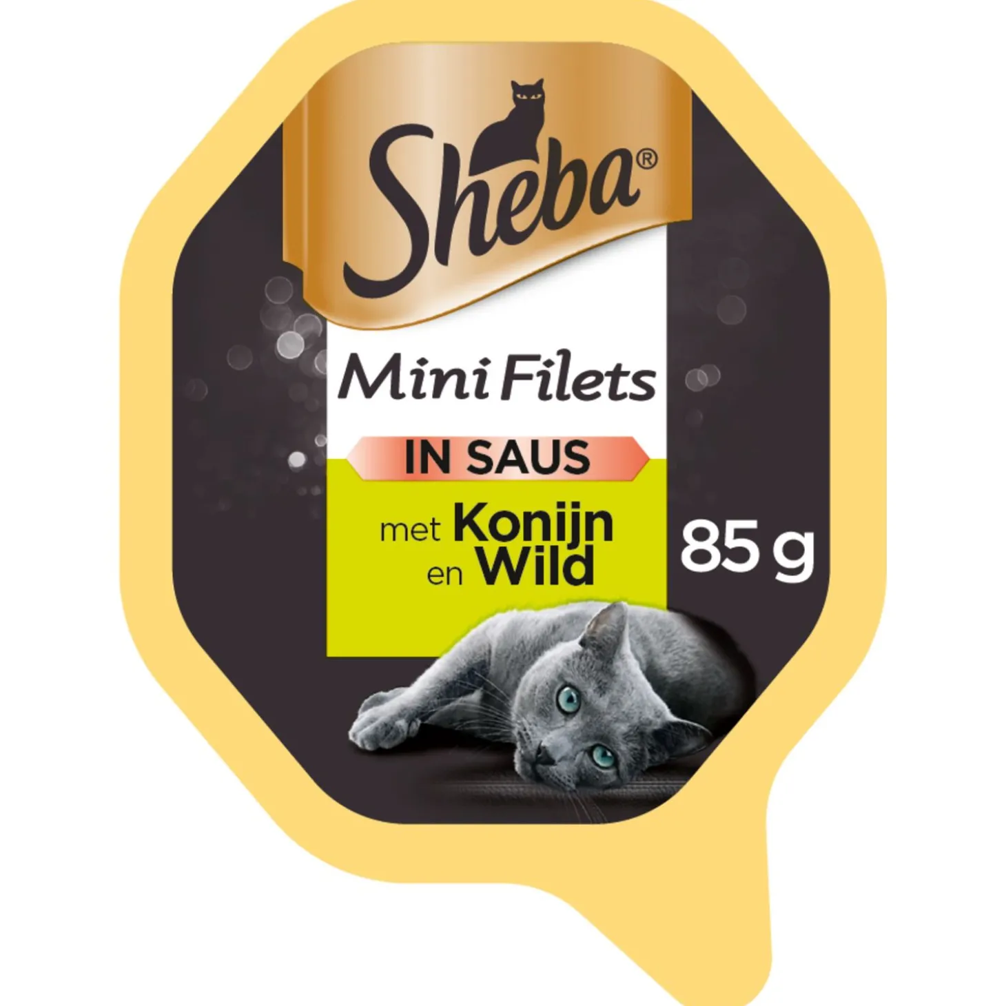 Sheba Mini Filets in Saus bevat 85 g en is verkrijgbaar in de smaken kip-kalkoen, kip-lam, rund-kalkoen en wild-konijn.