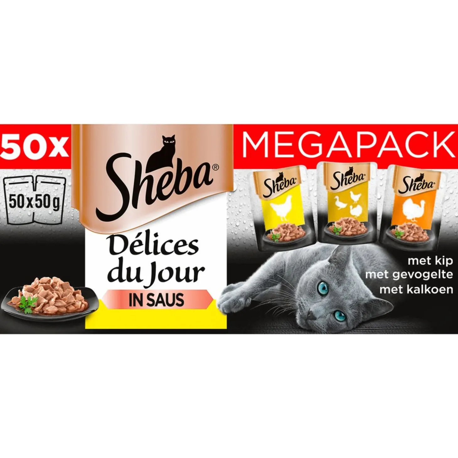 - Fijne stukjes gevogelte in een smakelijke saus.Handige portiezakjes van 50 gram, geen restjes. Nu in een handige grootverpakking van 50 maaltijdzakjes Zonder kunstmatige kleurstoffen, conserveermiddelen of smaakstoffen 100% recyclebare omverpakking