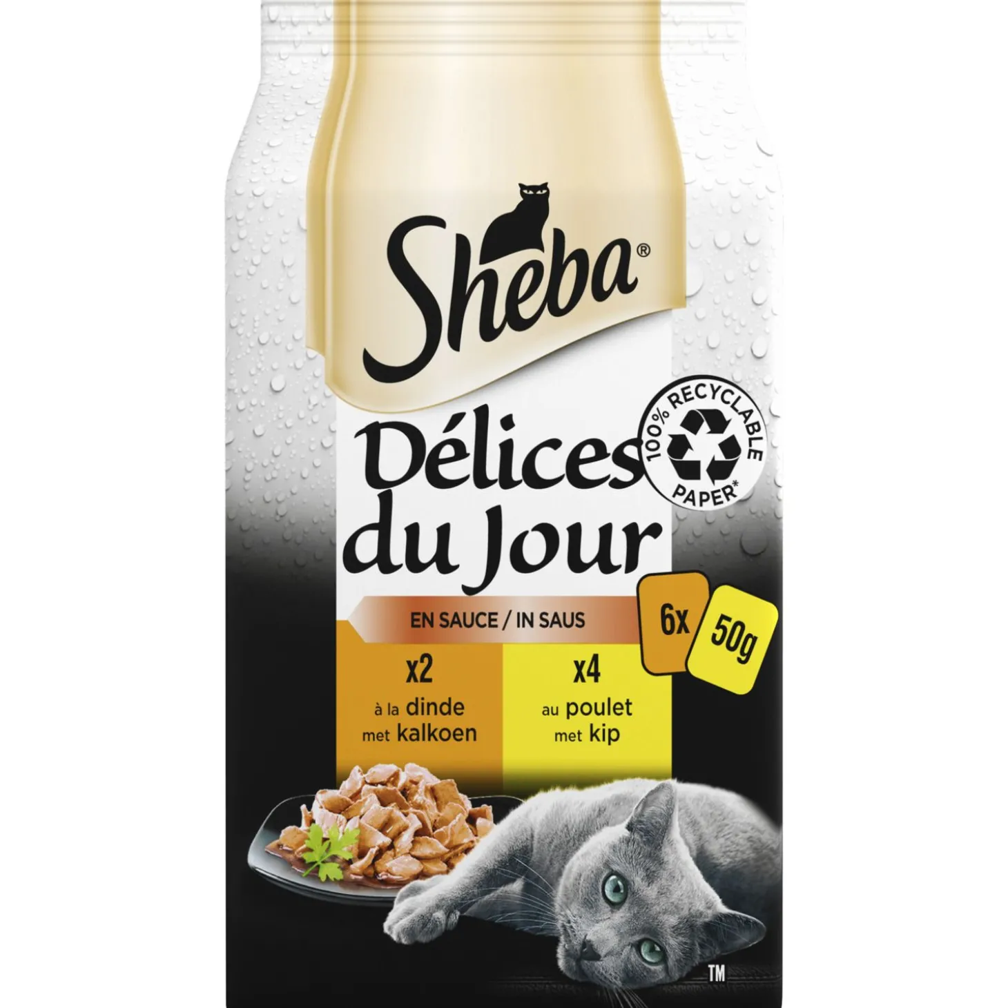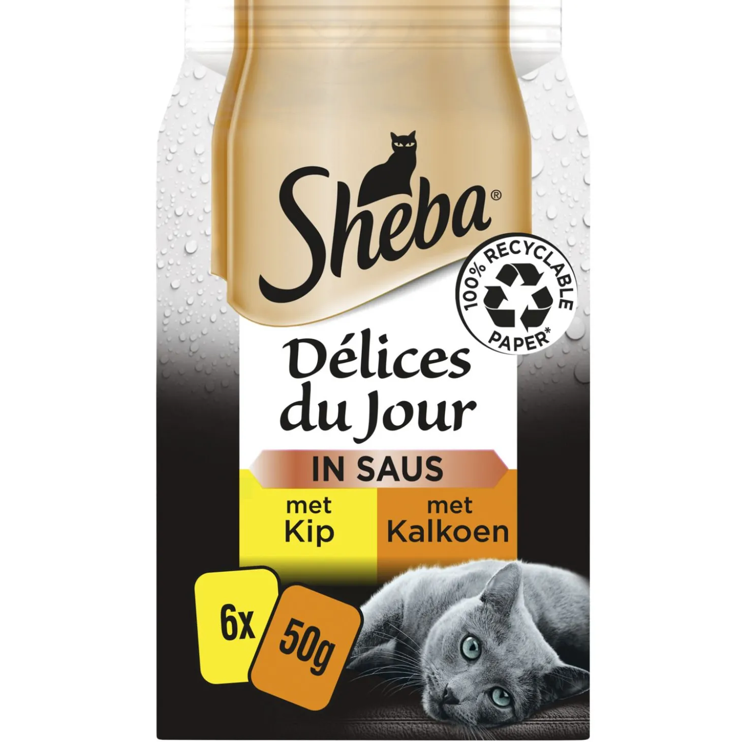 Natvoer is een echte traktatie voor je kat. Het is ook nog eens gezond dankzij onder andere het hoge vochtgehalte, aangezien katten van nature weinig drinken. Met de Sheba Délices du Jour voorzie je jouw kat van een complete maaltijd met sappige en malse reepjes vlees of vis, overgoten met een heerlijke saus.
